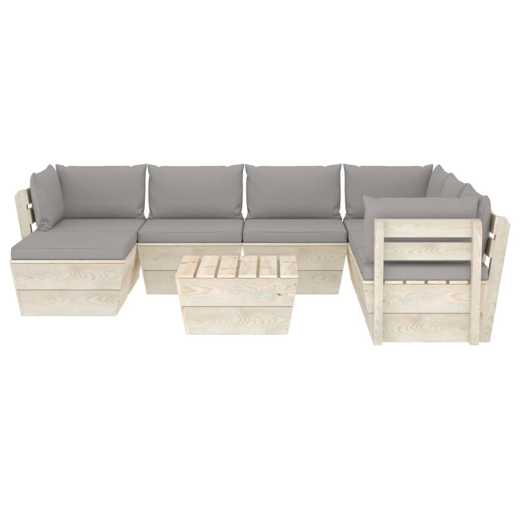 8-cz. ogrodowy zestaw wypoczynkowy z palet, poduszki, świerk