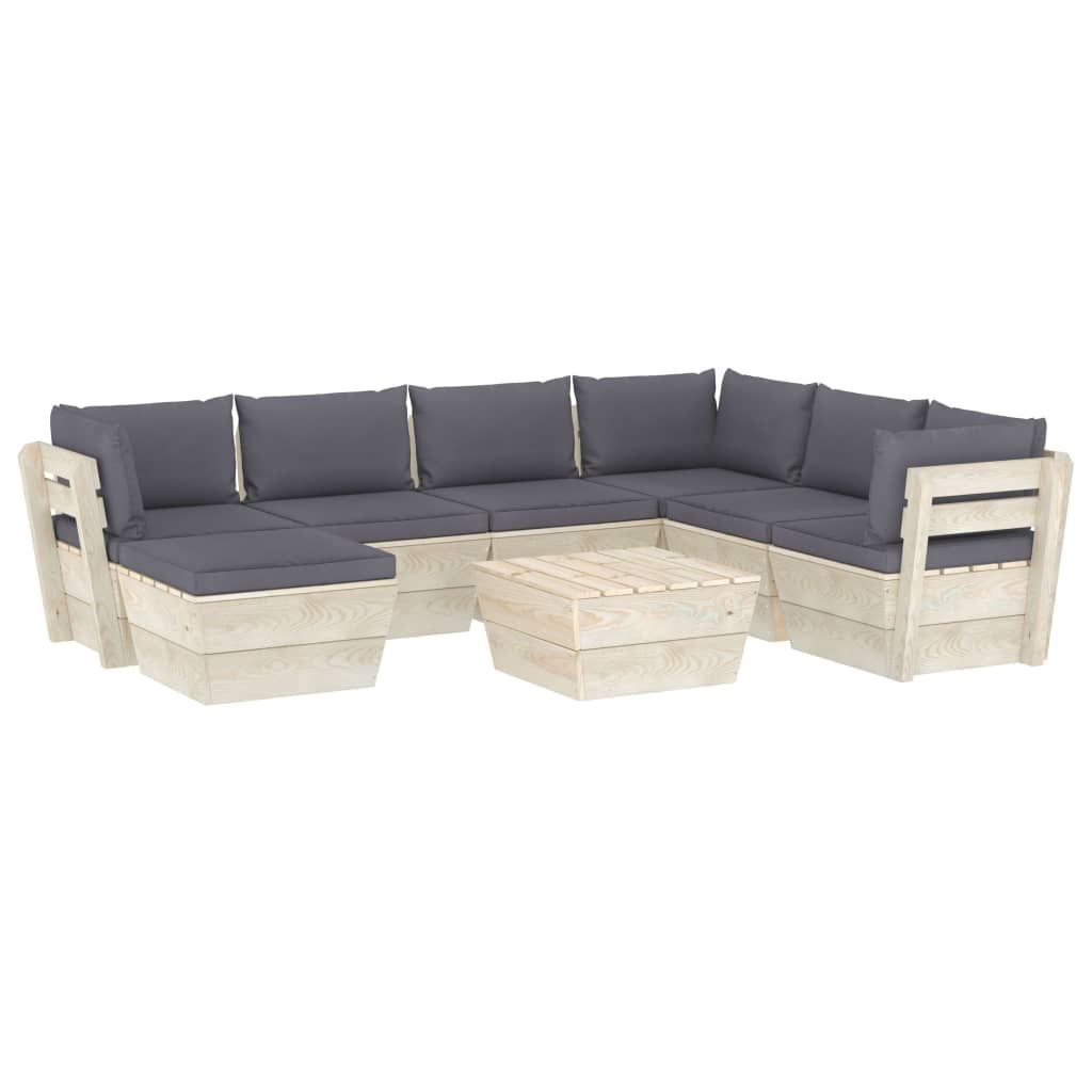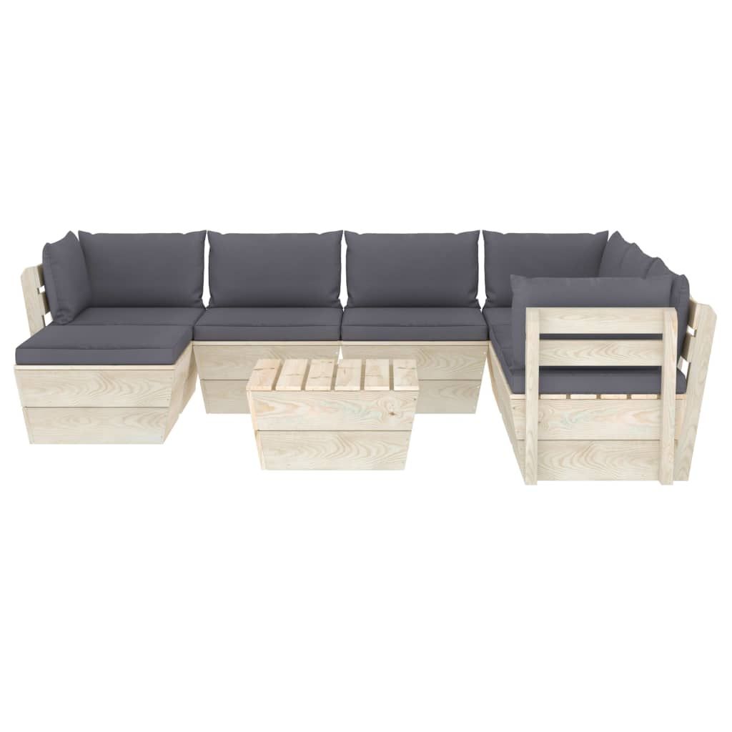 8-cz. ogrodowy zestaw wypoczynkowy z palet, poduszki, świerk