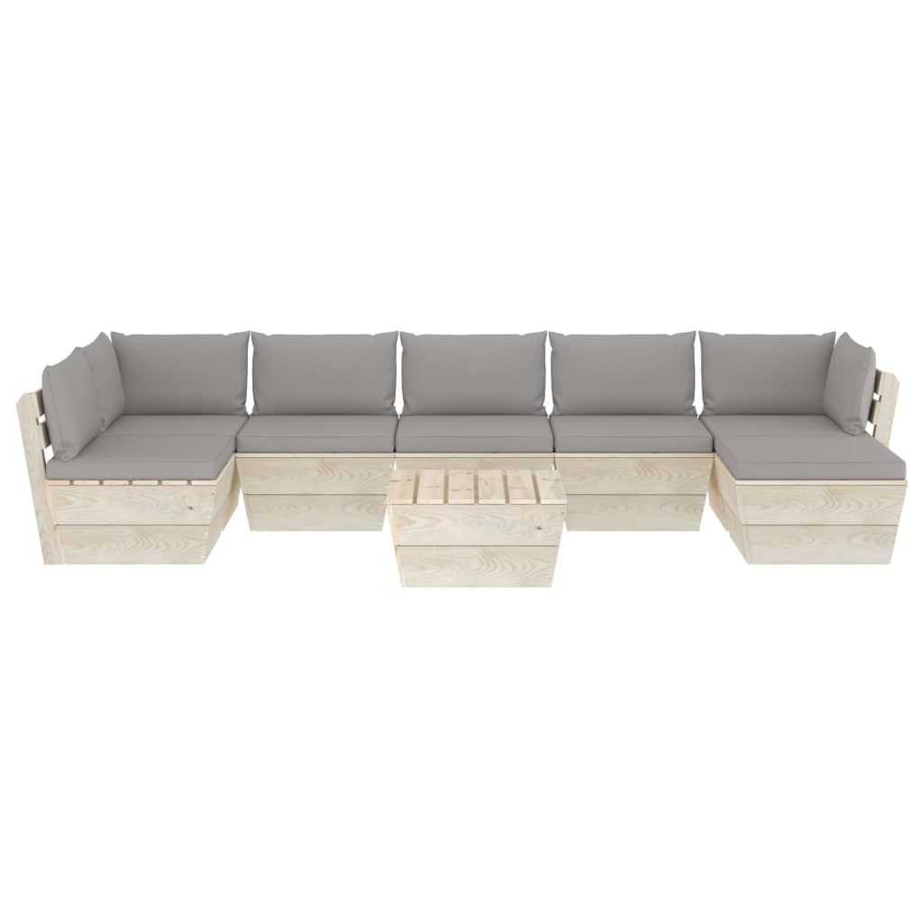 8-cz. ogrodowy zestaw wypoczynkowy z palet, poduszki, świerk