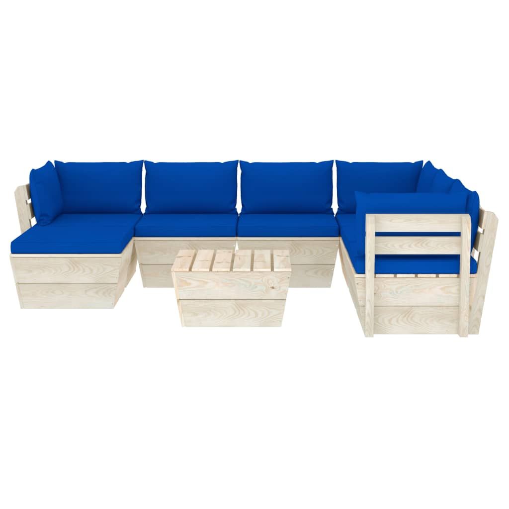 8-cz. ogrodowy zestaw wypoczynkowy z palet, poduszki, świerk