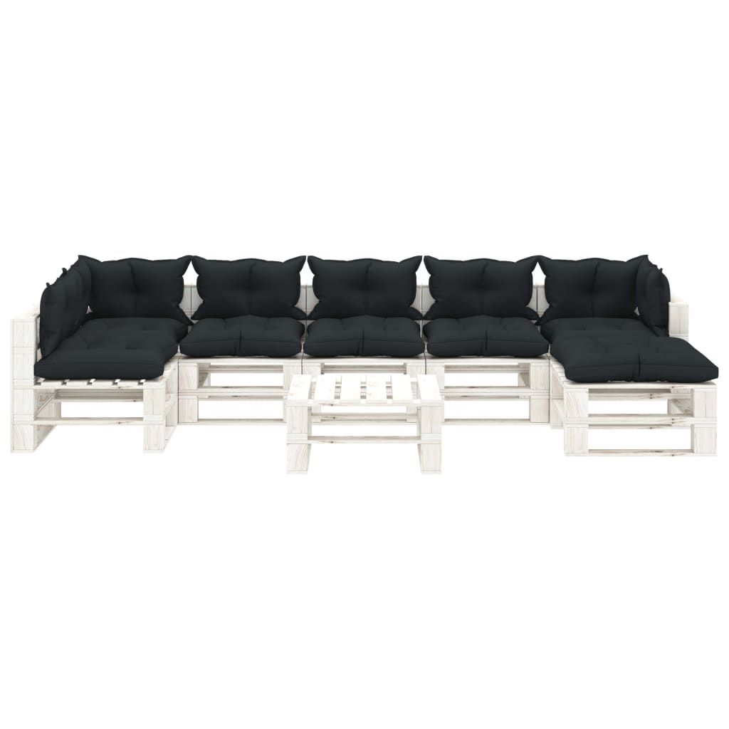 8-cz. zestaw mebli ogrodowych z palet, antracytowe poduszki