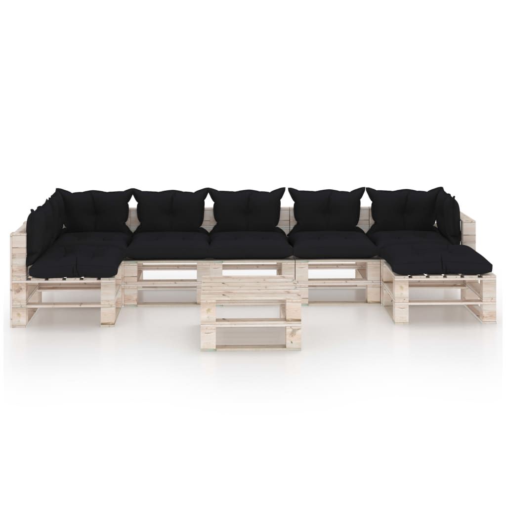 8-cz. zestaw mebli ogrodowych z palet, z poduszkami, sosna