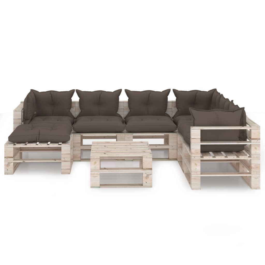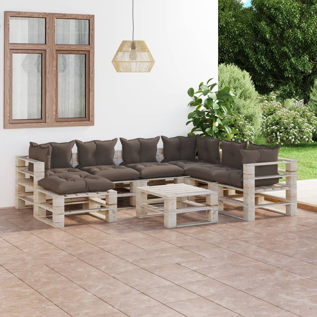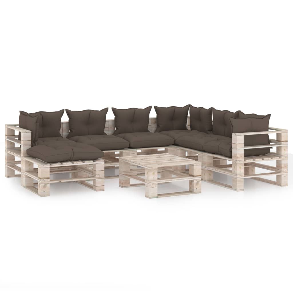 8-cz. zestaw mebli ogrodowych z palet, z poduszkami, sosna