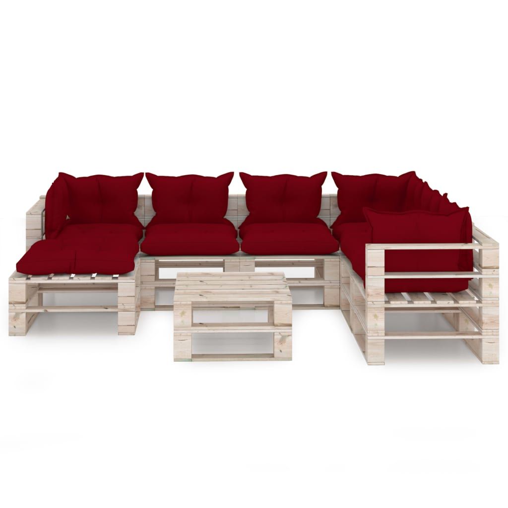 8-cz. zestaw mebli ogrodowych z palet, z poduszkami, sosna