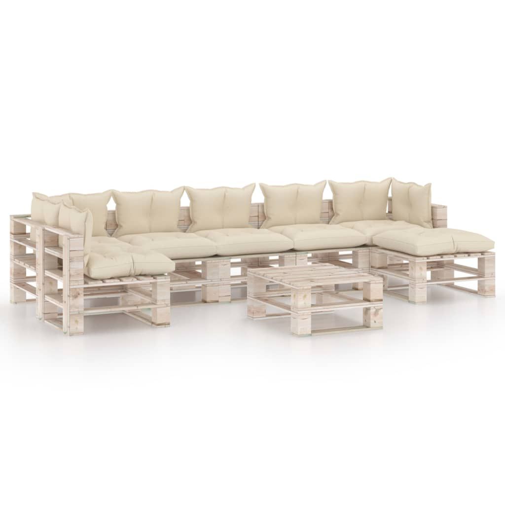 8-cz. zestaw mebli ogrodowych z palet, z poduszkami, sosna