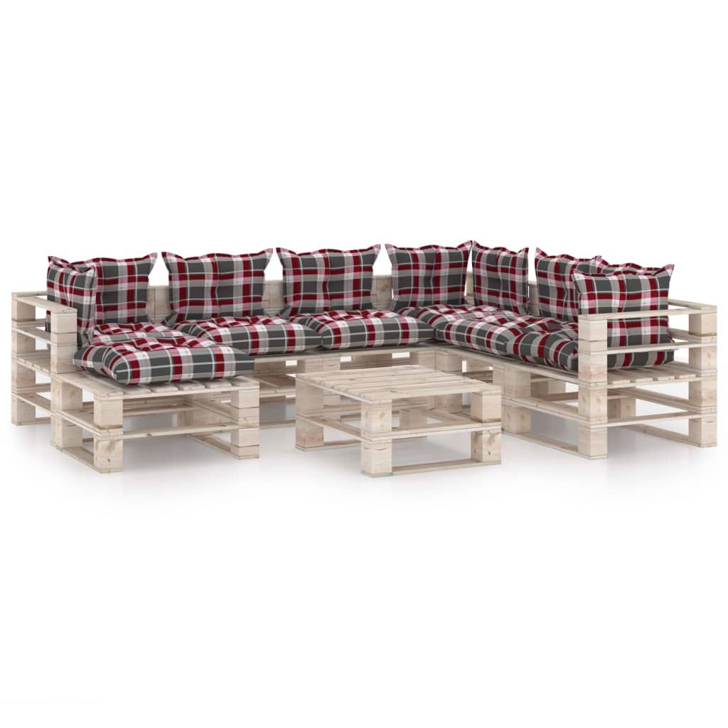 8-cz. zestaw mebli ogrodowych z palet, z poduszkami, sosna