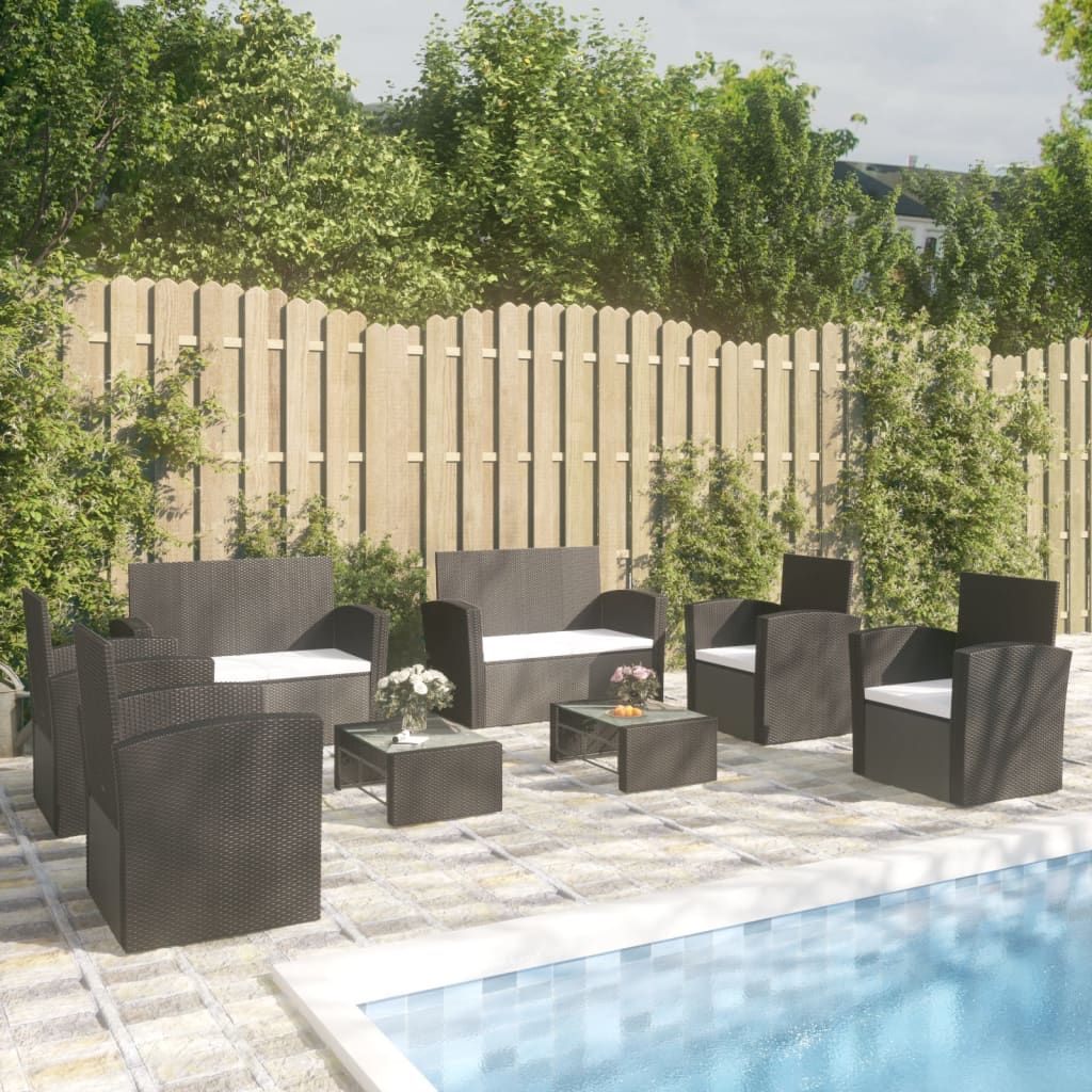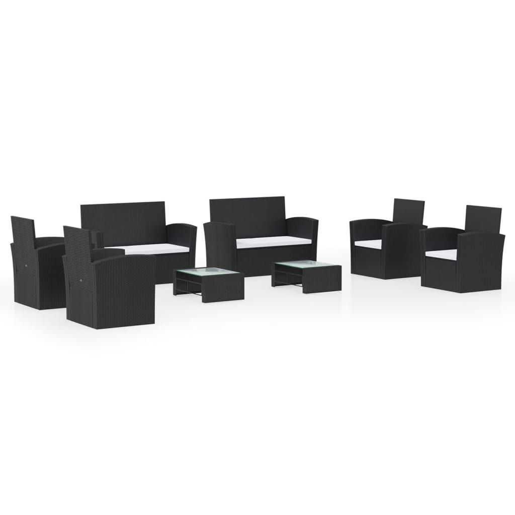 8-cz. zestaw wypoczynkowy do ogrodu, poduszki, czarny rattan PE