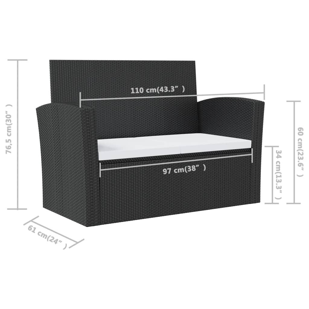 • Wymiary sofy 2-osobowej: 110 x 61 x 76,5 cm (szer. x gł. x wys.)