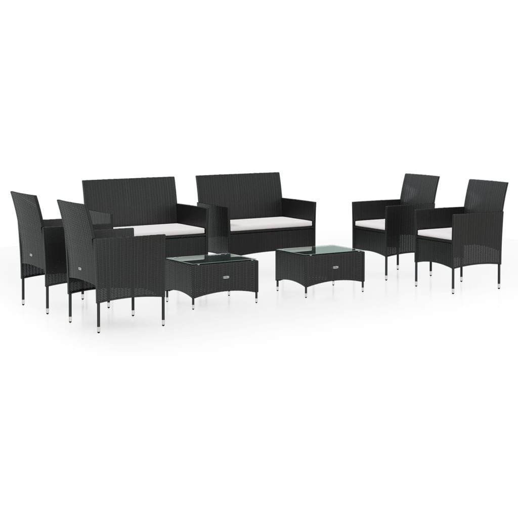 8-cz. zestaw wypoczynkowy do ogrodu, poduszki, czarny rattan PE