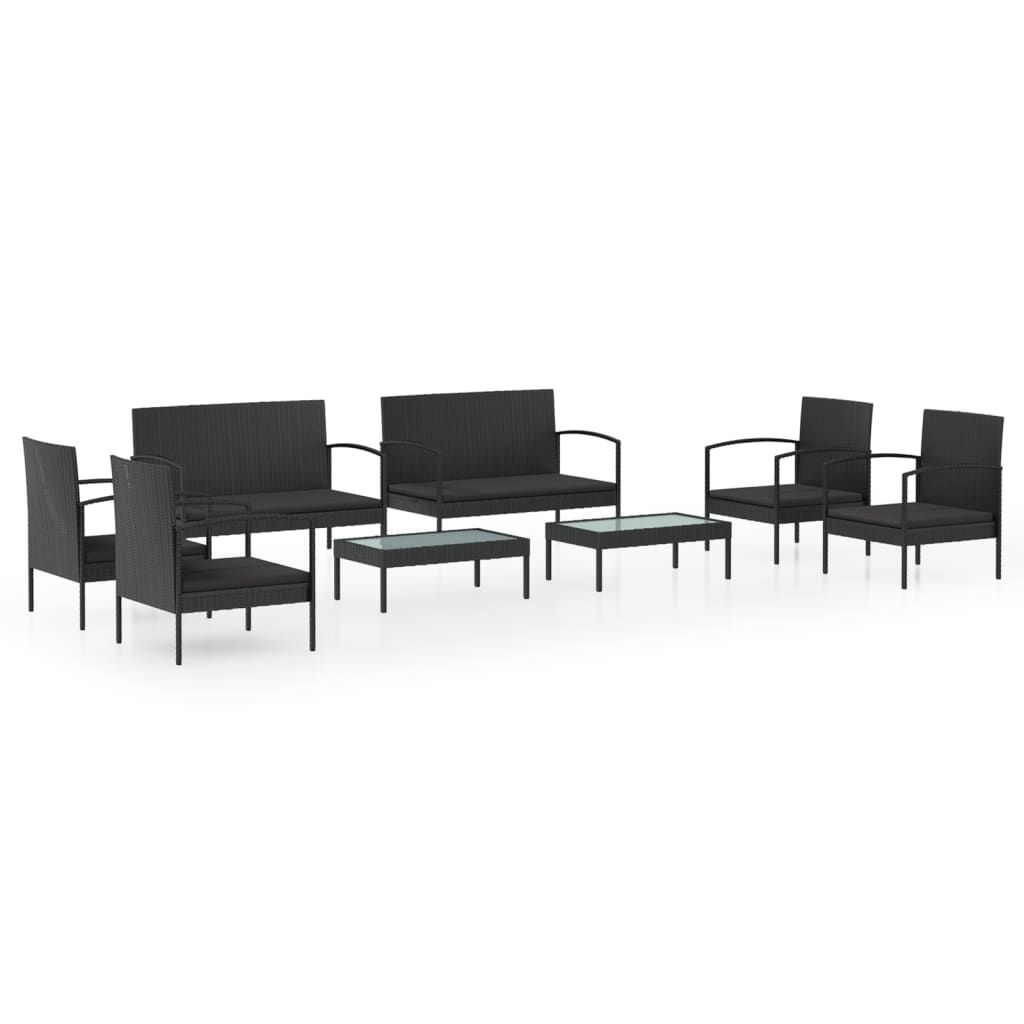 8-cz. zestaw wypoczynkowy do ogrodu, poduszki, czarny rattan PE