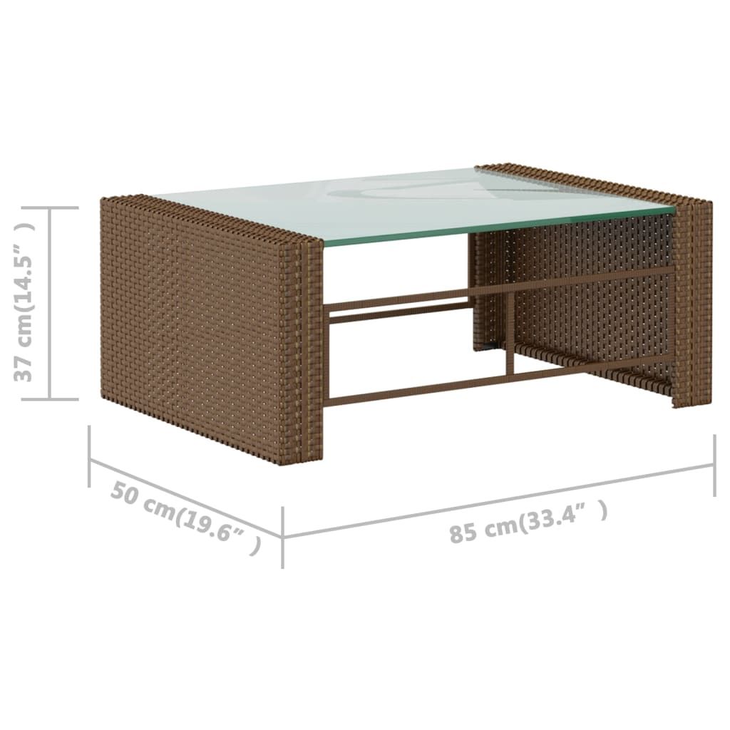 Stwórz relaksującą strefę wypoczynkową za sprawą tego ogrodowego kompletu z polirattanu. Dzięki eleganckiemu wzornictwu stanie się on centralnym punktem Twojego ogrodu lub patio! Wygodny zestaw wypoczynkowy zawiera stalowe ramy malowane proszkowo, pokryte rattanem PE, dzięki czemu jest mocny i wytrzymały. Za sprawą lekkiej konstrukcji wszystkie jego elementy można łatwo przestawiać. Szklany blat jest również łatwy w czyszczeniu - wystarczy przetrzeć go wilgotną ściereczką. Grubo wyściełane poduszki oferują większy komfort podczas wypoczynku. Dodatkowo poszewki na poduszki można zdejmować za pomocą zamków błyskawicznych i bez problemu uprać. Uwaga: aby przedłużyć żywotność mebli ogrodowych, zalecamy zabezpieczenie ich wodoodpornym pokrowcem.