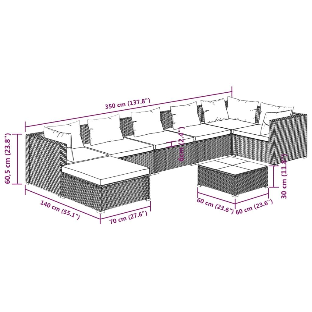 8-cz. zestaw wypoczynkowy do ogrodu, poduszki, rattan PE, brąz