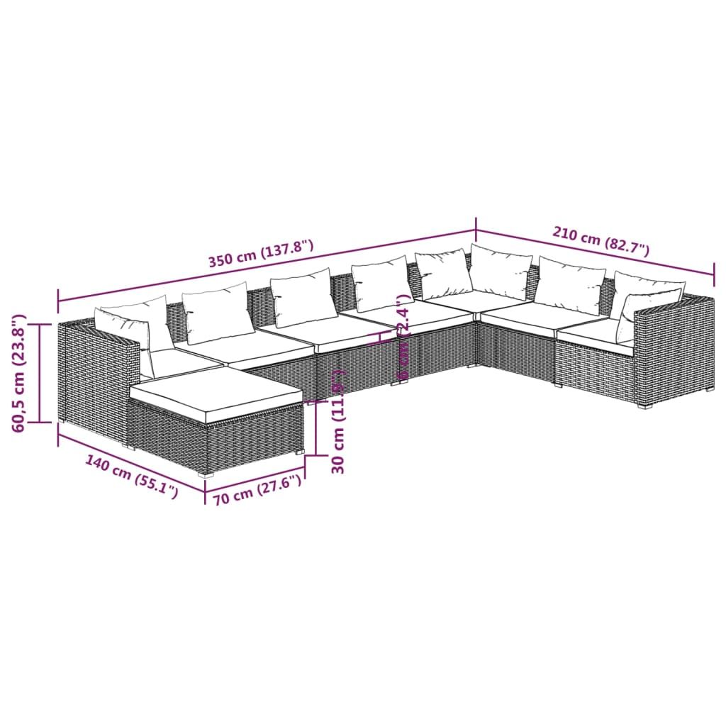8-cz. zestaw wypoczynkowy do ogrodu, poduszki, rattan PE, brąz