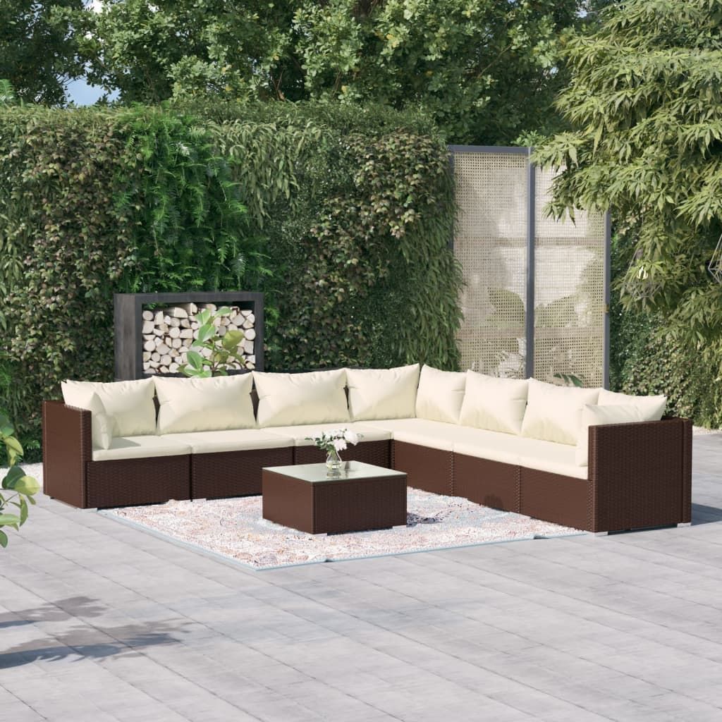 8-cz. zestaw wypoczynkowy do ogrodu, poduszki, rattan PE, brąz