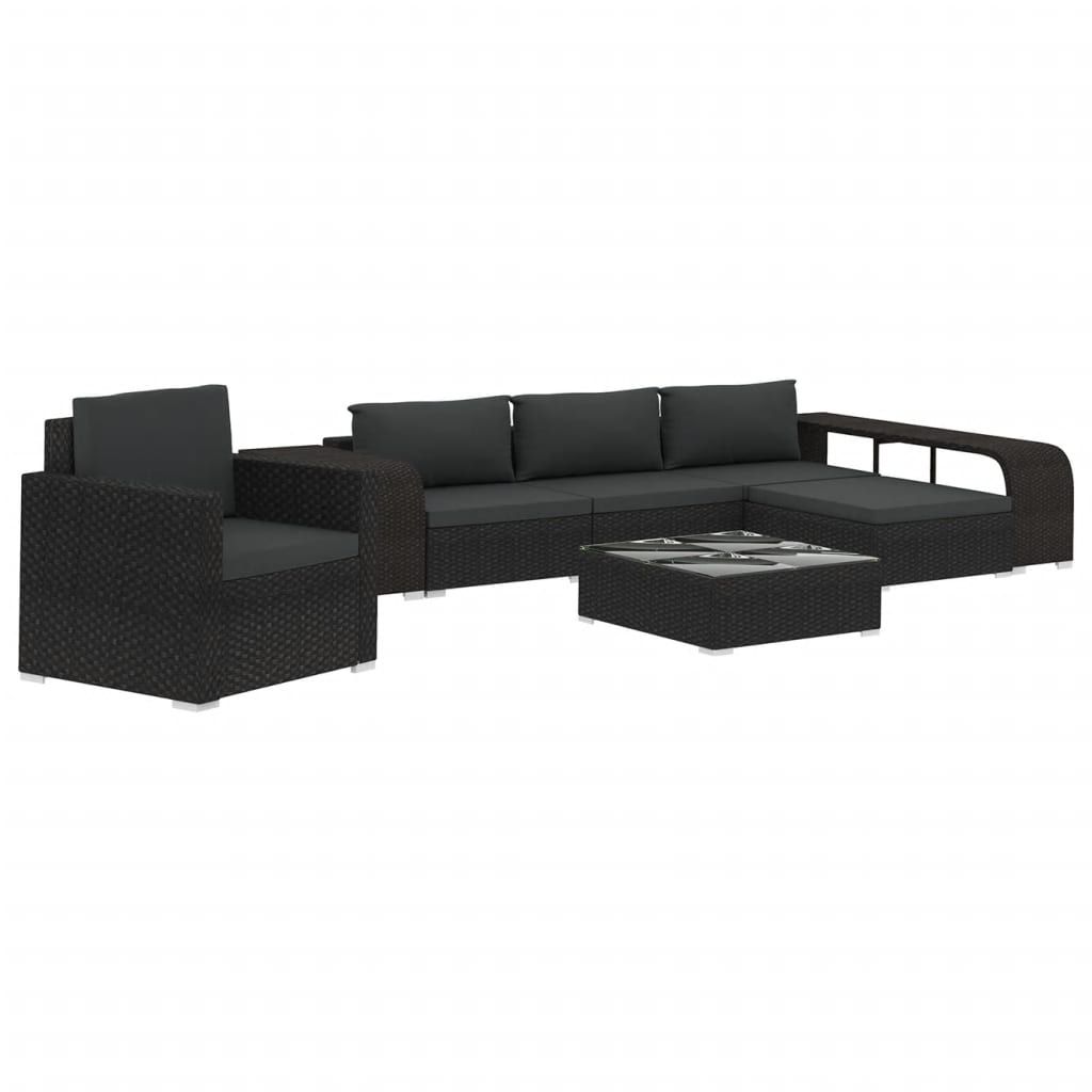 8-cz. zestaw wypoczynkowy do ogrodu, poduszki, rattan PE czarny