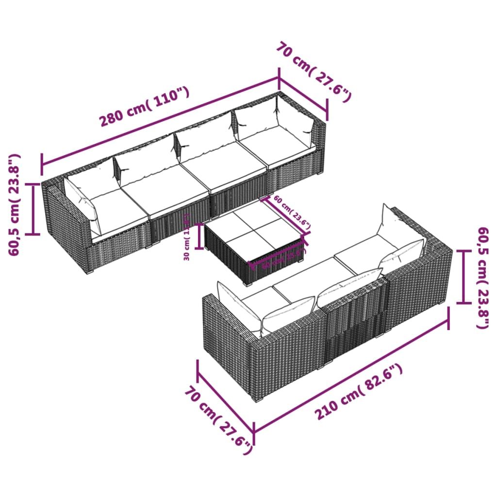 8-cz. zestaw wypoczynkowy do ogrodu, poduszki, rattan PE czarny