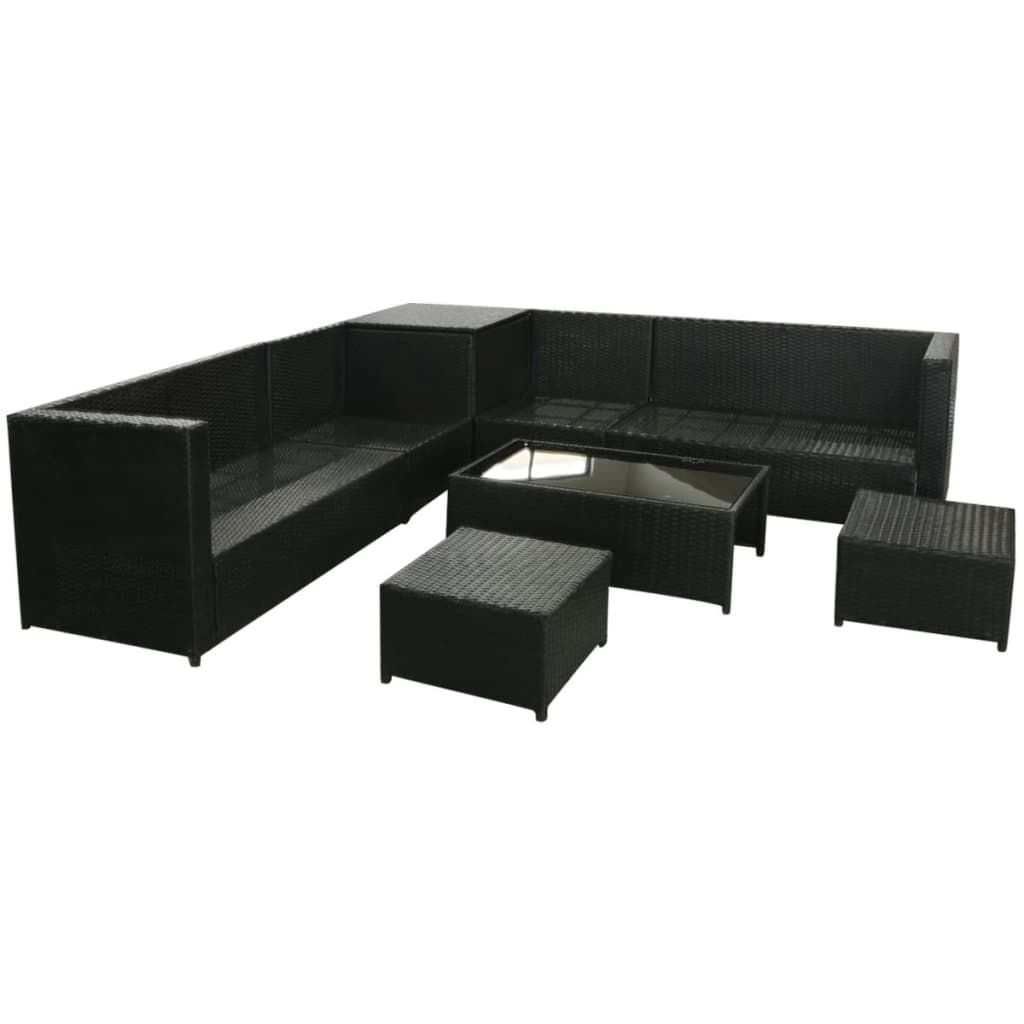8-cz. zestaw wypoczynkowy do ogrodu, poduszki, rattan PE czarny
