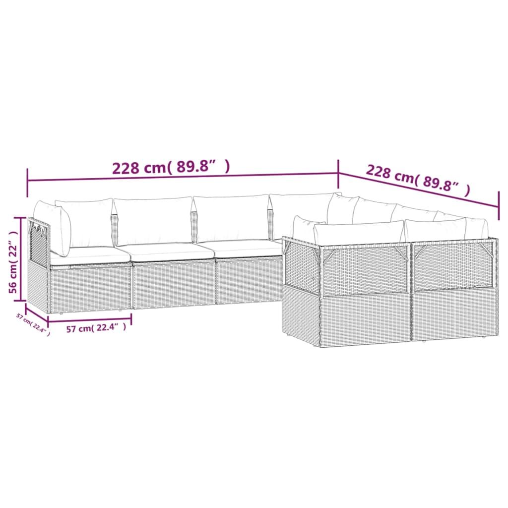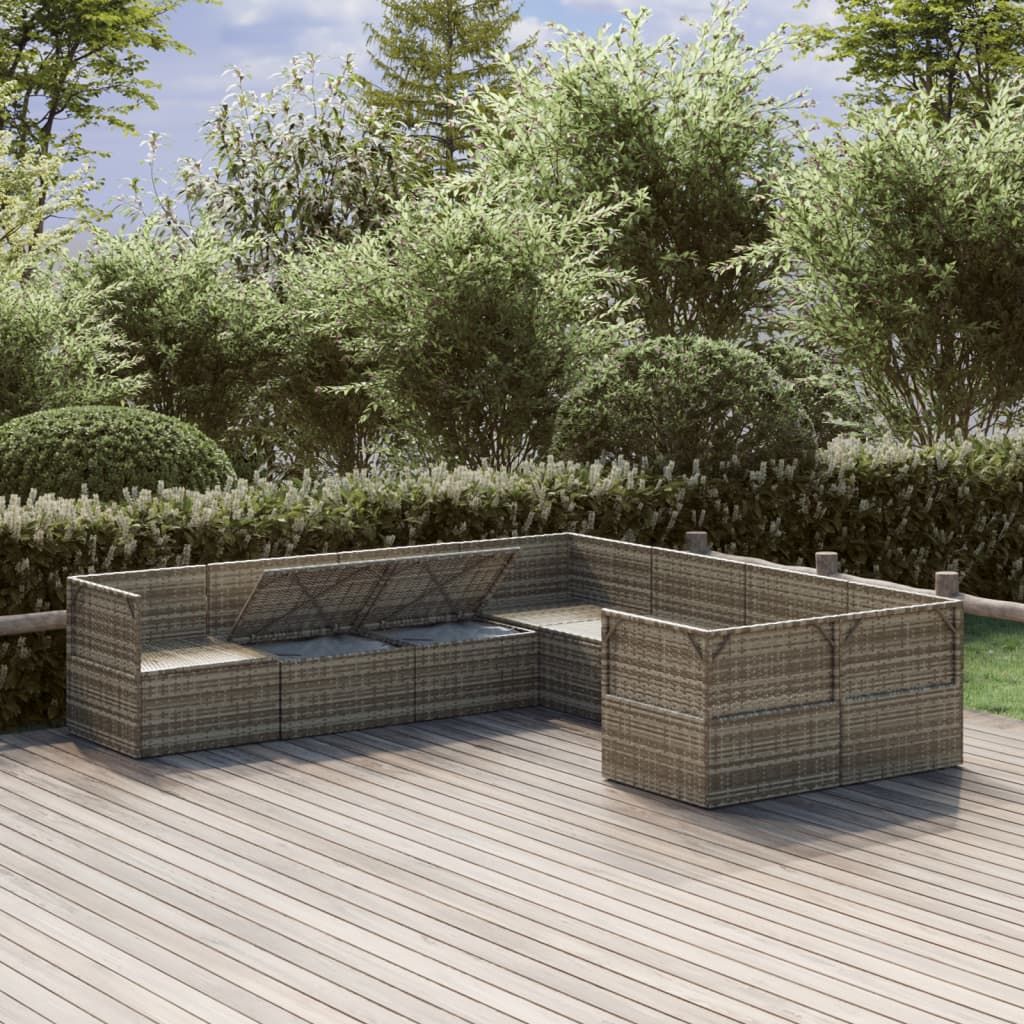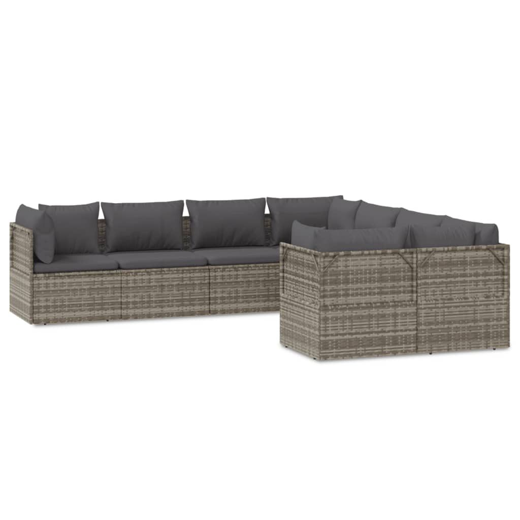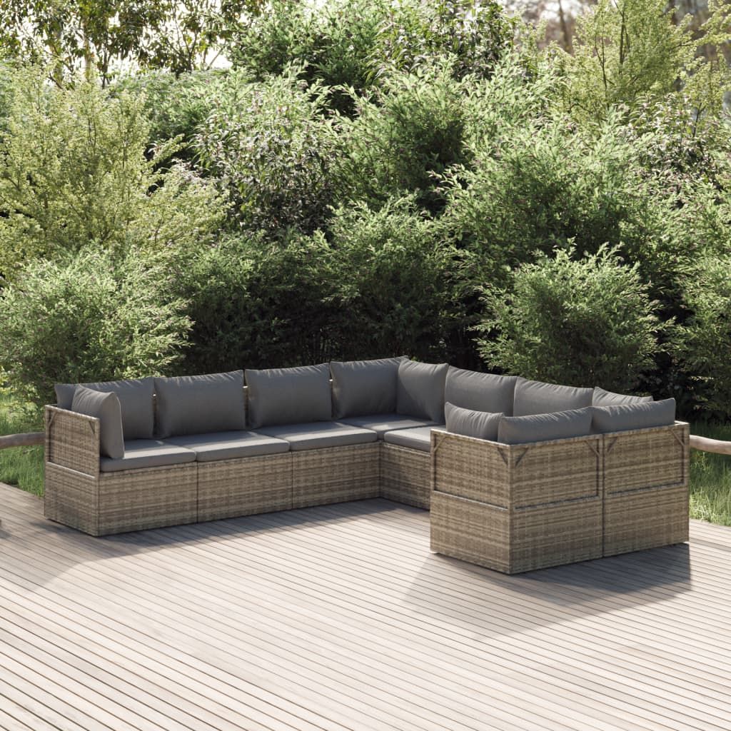 8-cz. zestaw wypoczynkowy do ogrodu, poduszki, rattan PE, szary