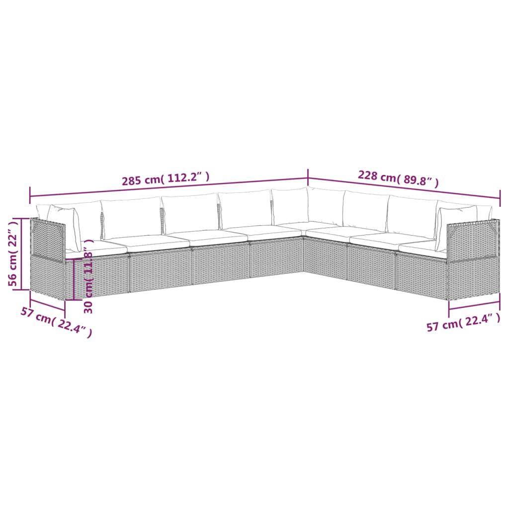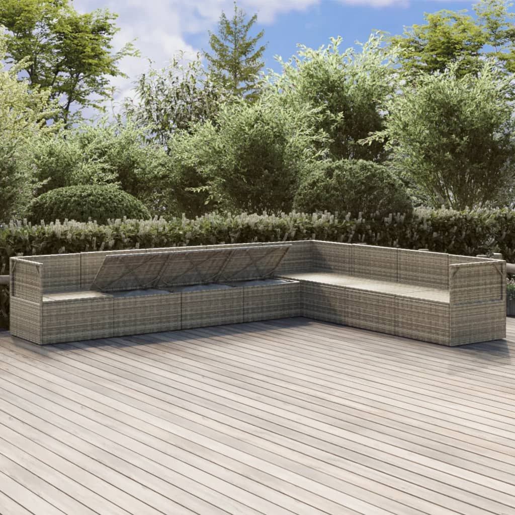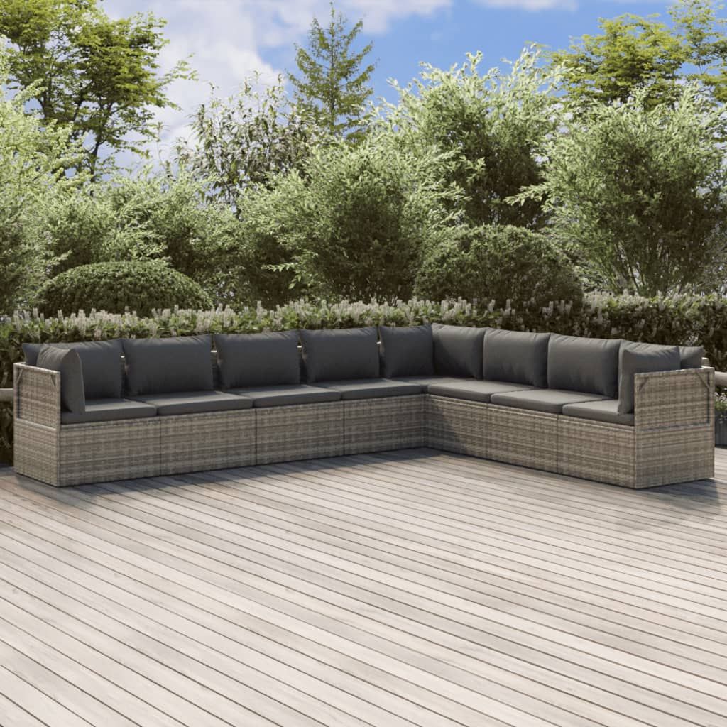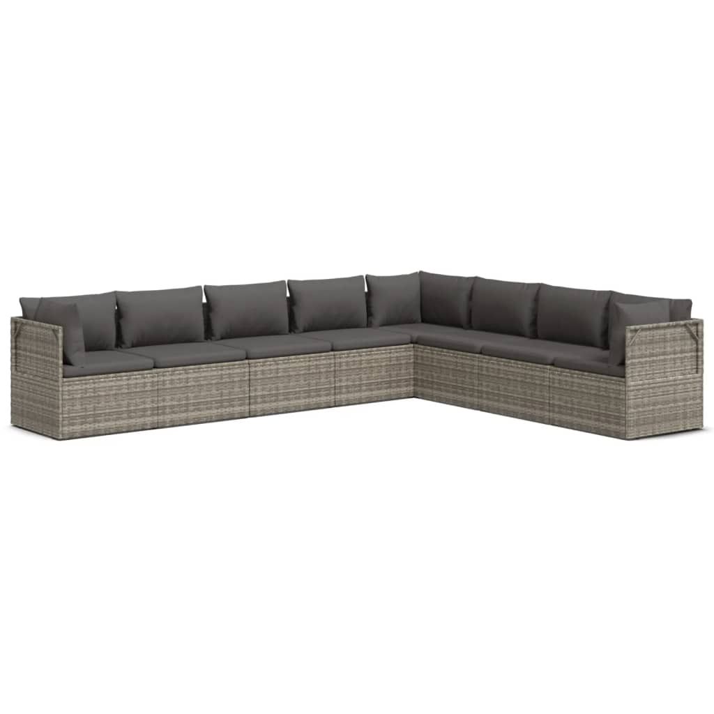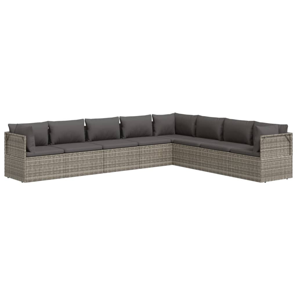 8-cz. zestaw wypoczynkowy do ogrodu, poduszki, rattan PE, szary