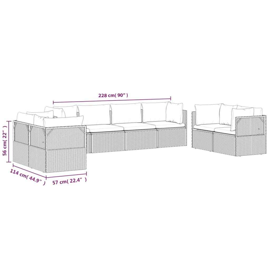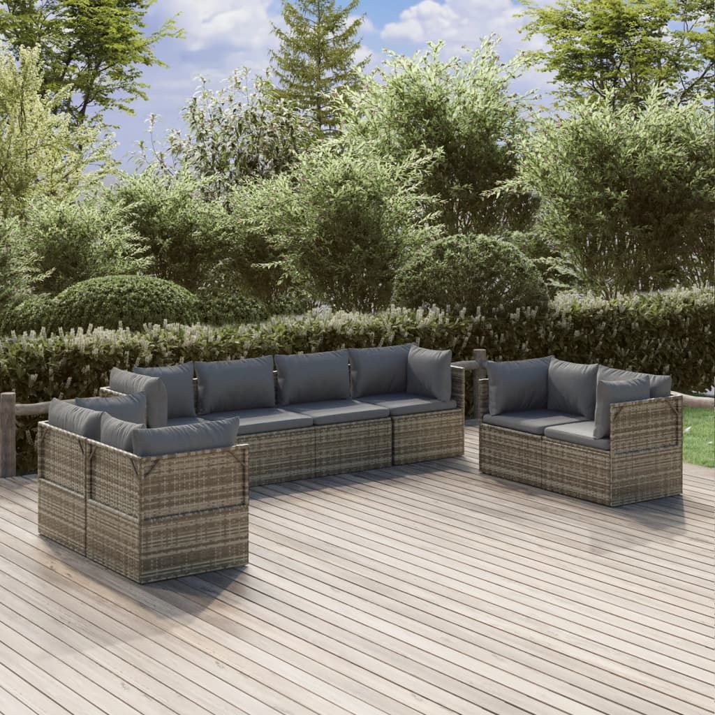 8-cz. zestaw wypoczynkowy do ogrodu, poduszki, rattan PE, szary