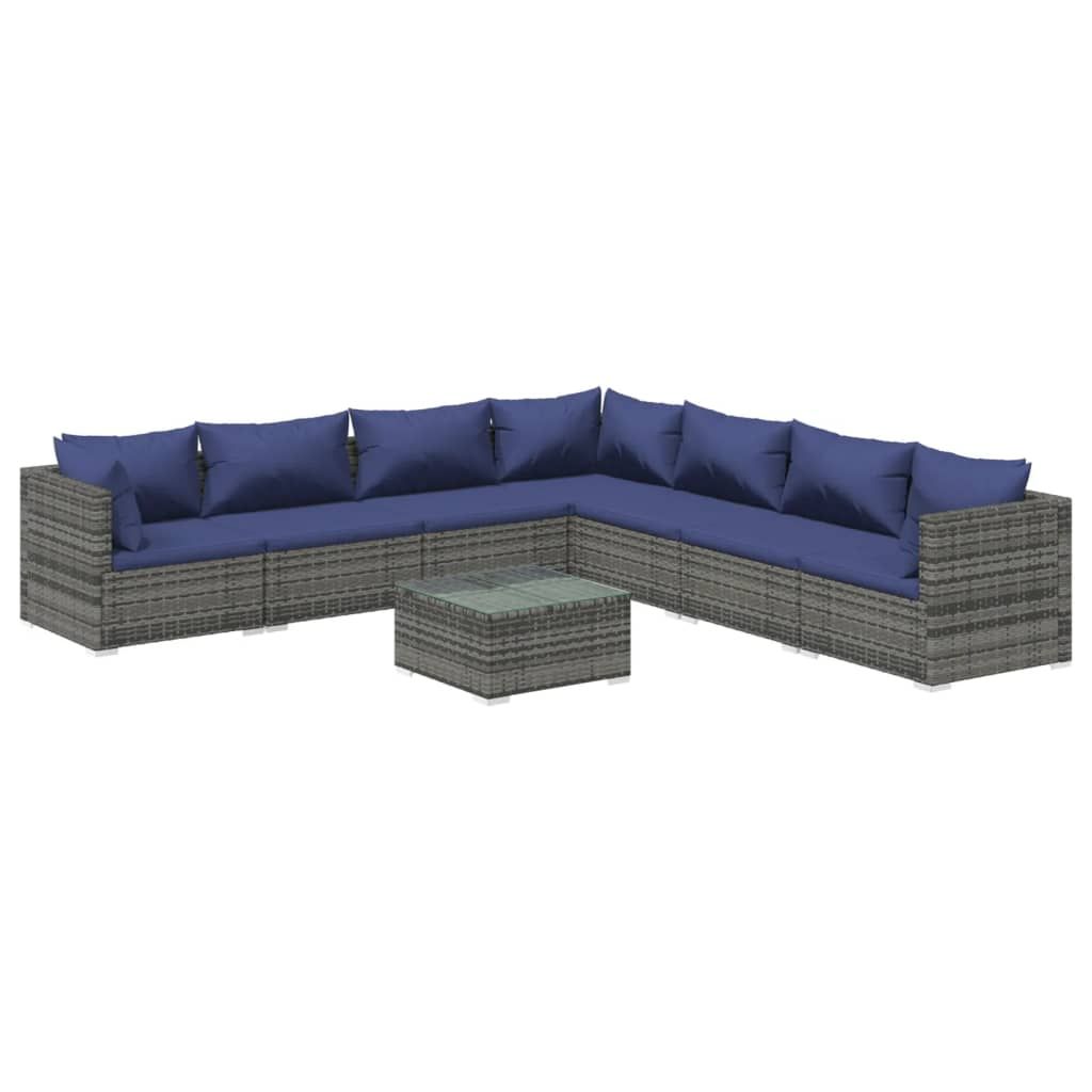 8-cz. zestaw wypoczynkowy do ogrodu, poduszki, rattan PE, szary