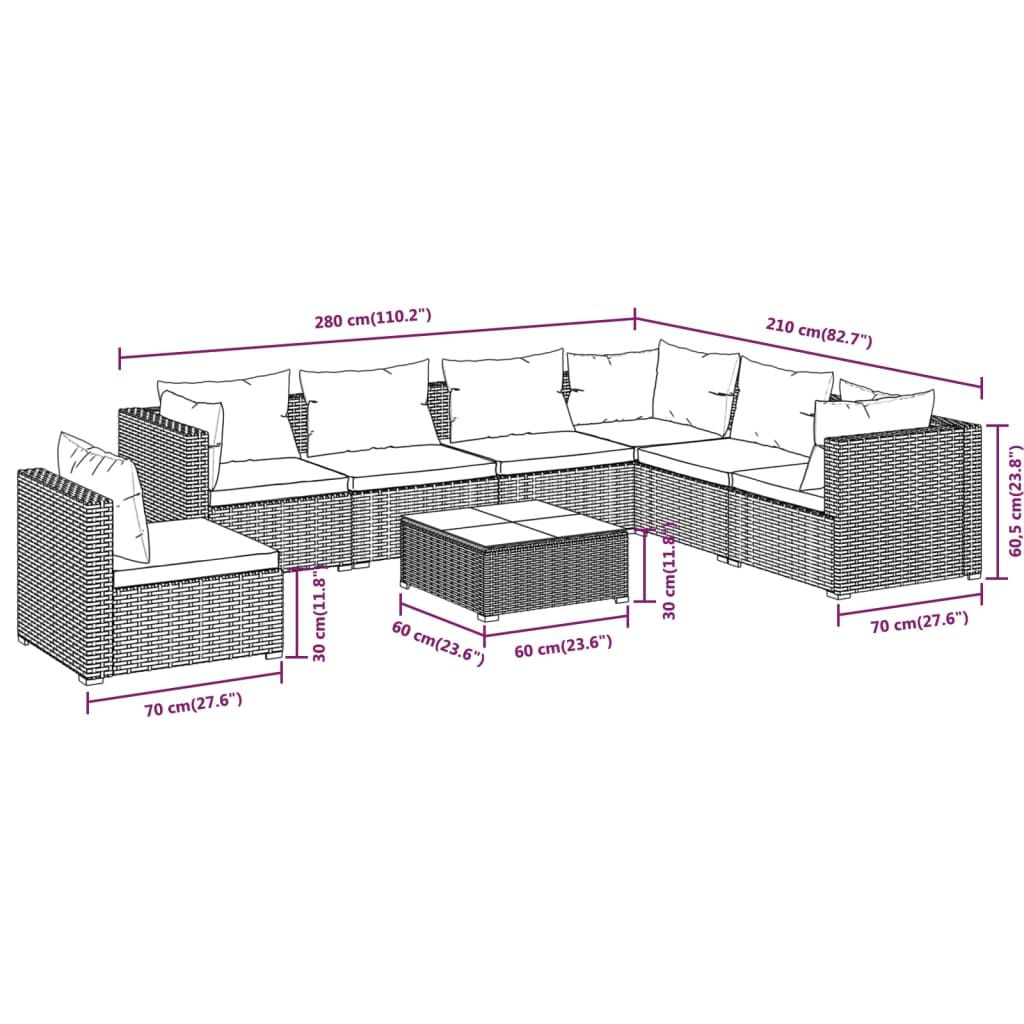8-cz. zestaw wypoczynkowy do ogrodu, poduszki, rattan PE, szary