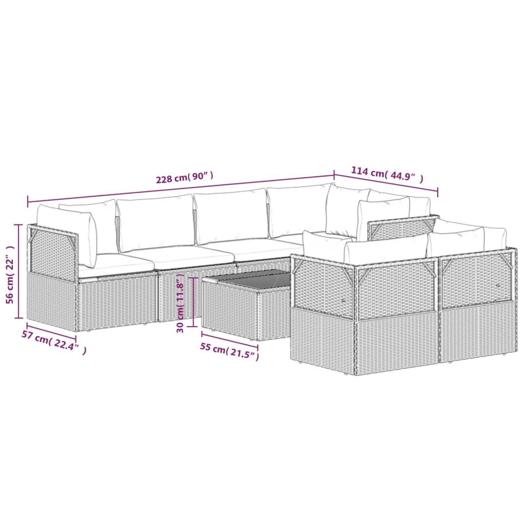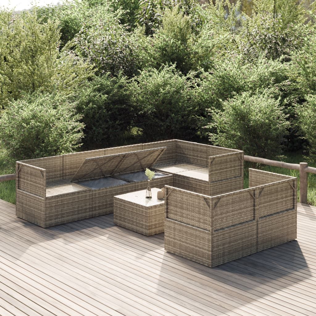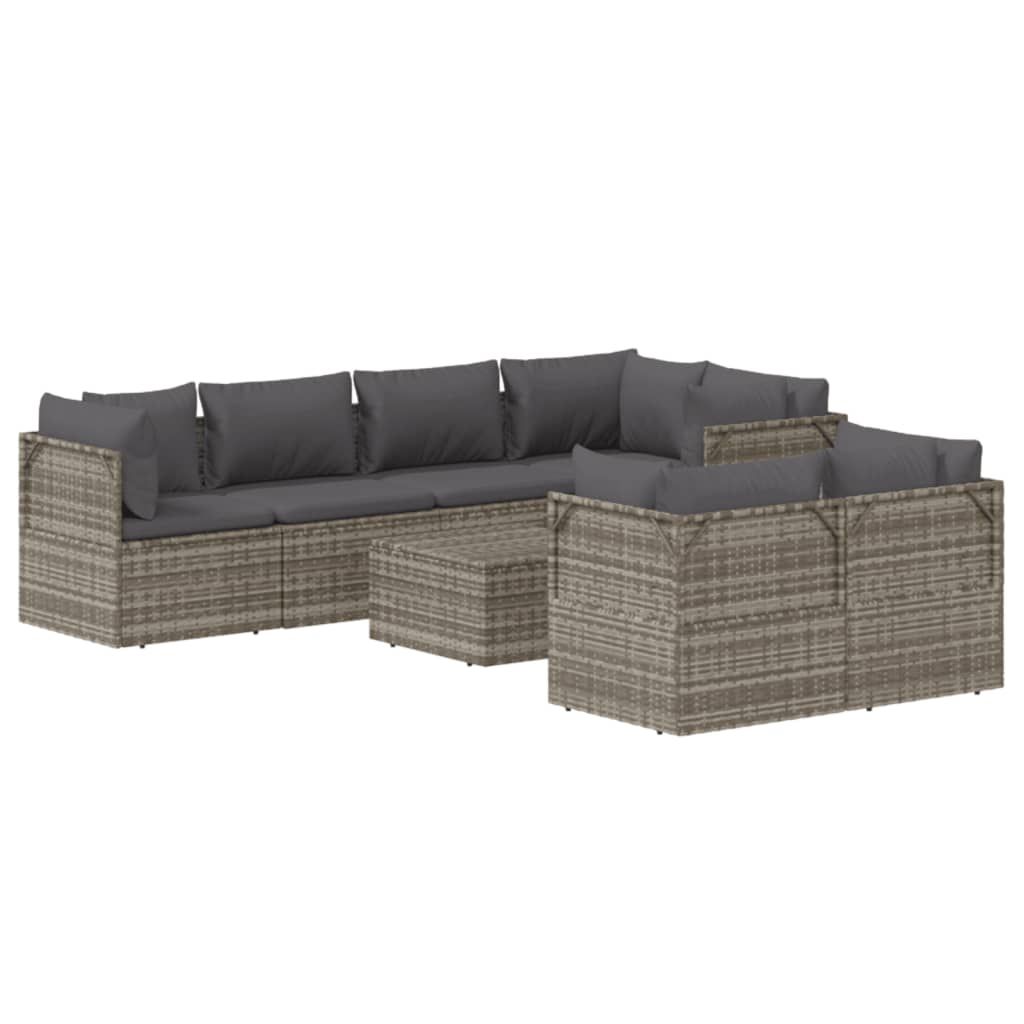 8-cz. zestaw wypoczynkowy do ogrodu, poduszki, rattan PE, szary