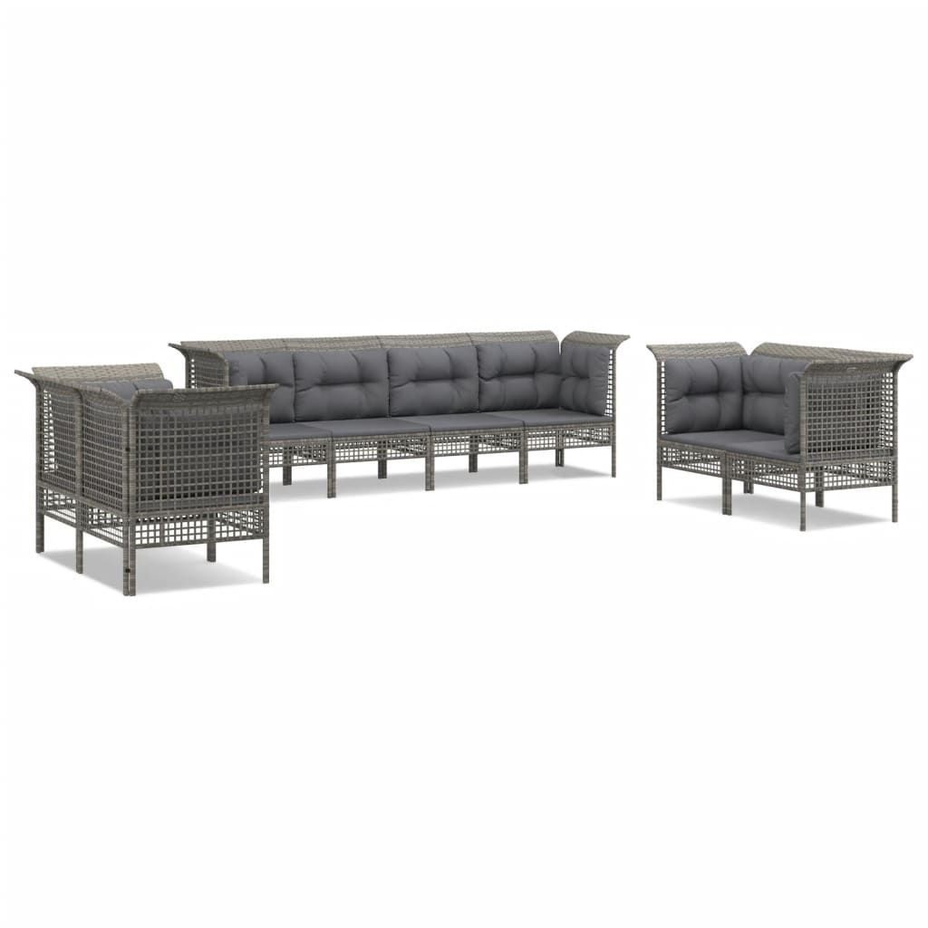 8-cz. zestaw wypoczynkowy do ogrodu, poduszki, rattan PE, szary