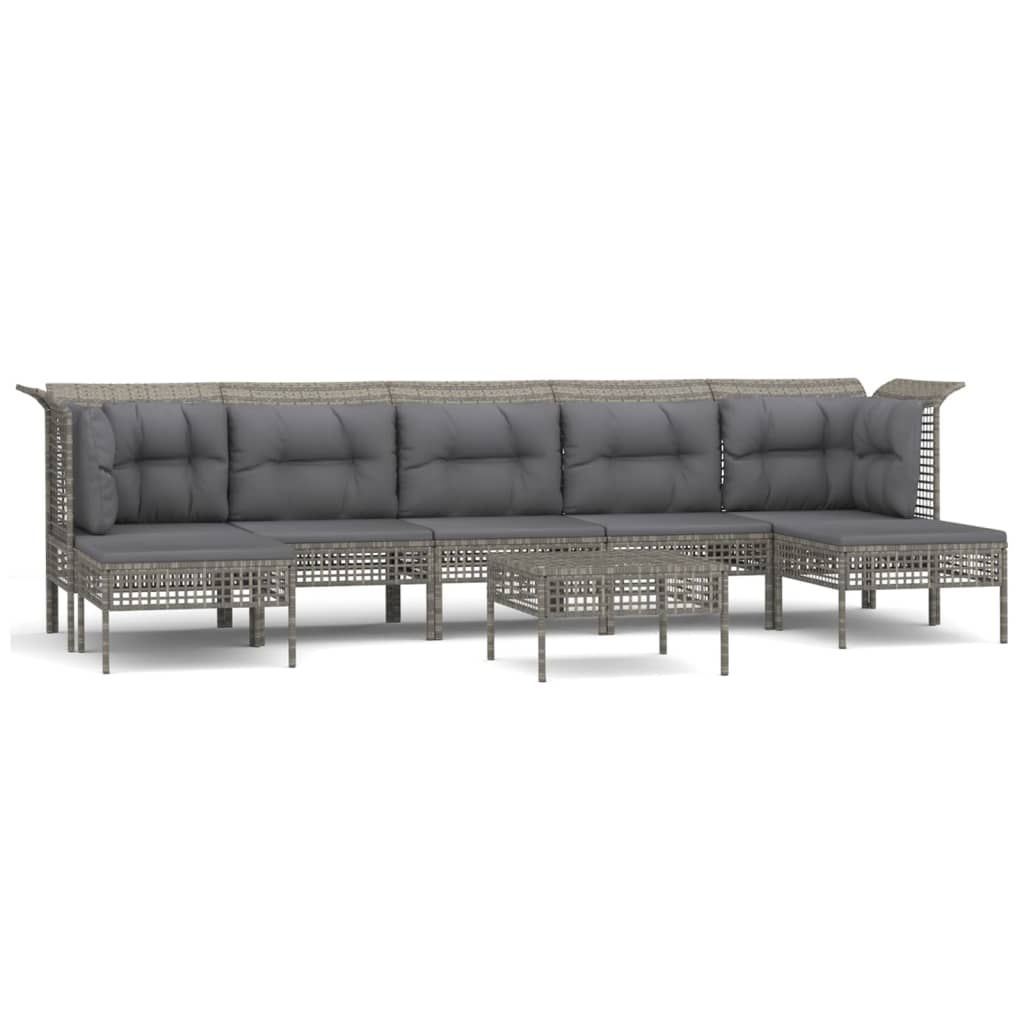 8-cz. zestaw wypoczynkowy do ogrodu, poduszki, rattan PE, szary