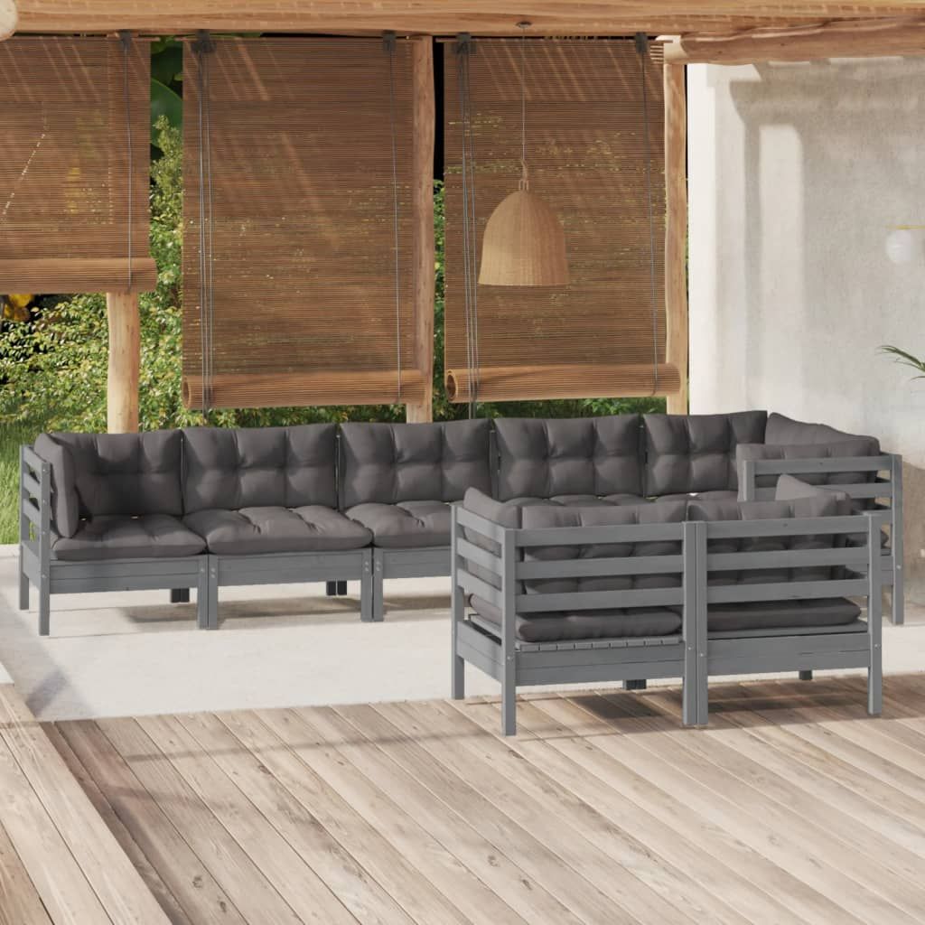 8-cz. zestaw wypoczynkowy do ogrodu, poduszki, szara sosna