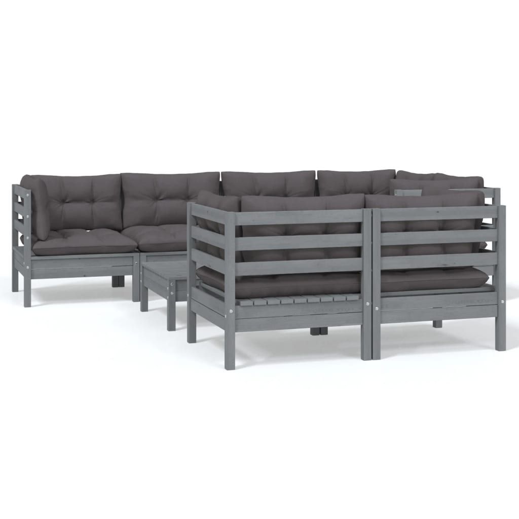 8-cz. zestaw wypoczynkowy do ogrodu, poduszki, szara sosna