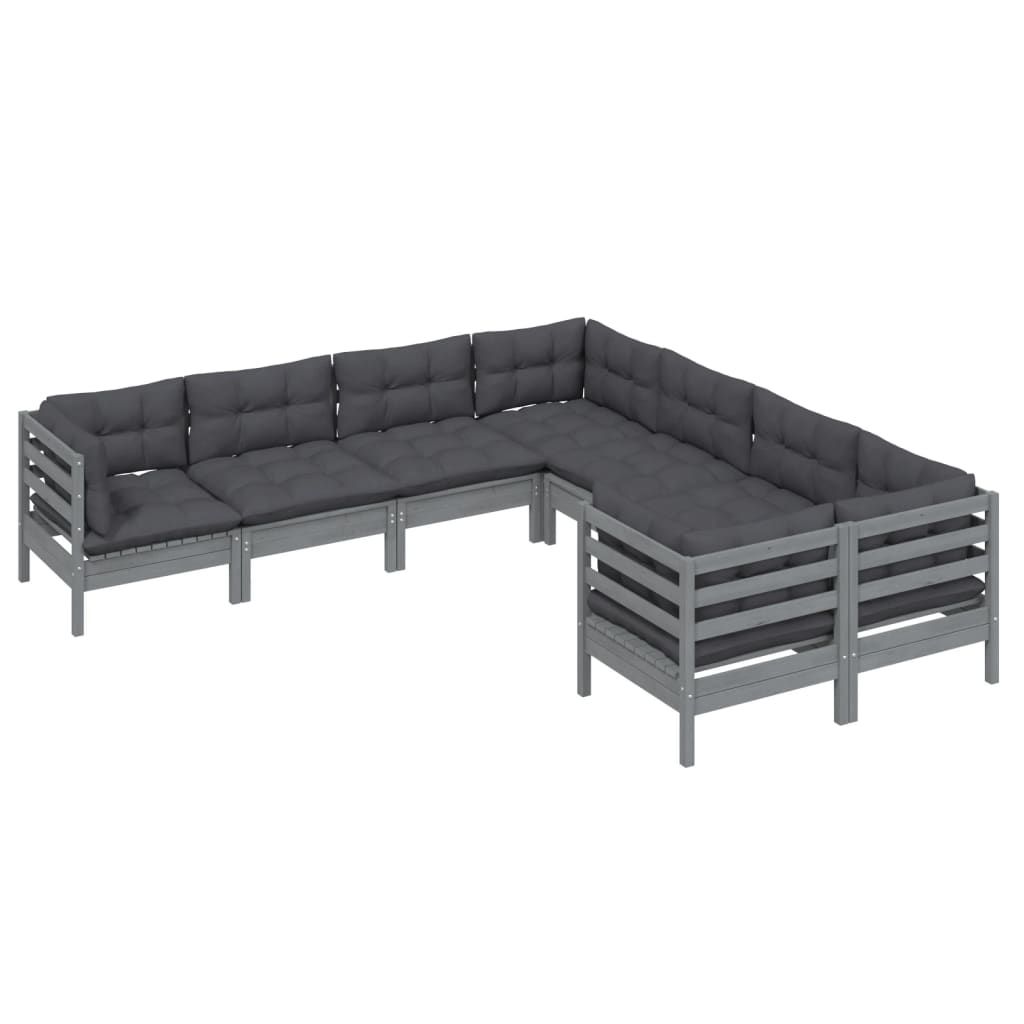 8-cz. zestaw wypoczynkowy do ogrodu, poduszki, szary, sosnowy