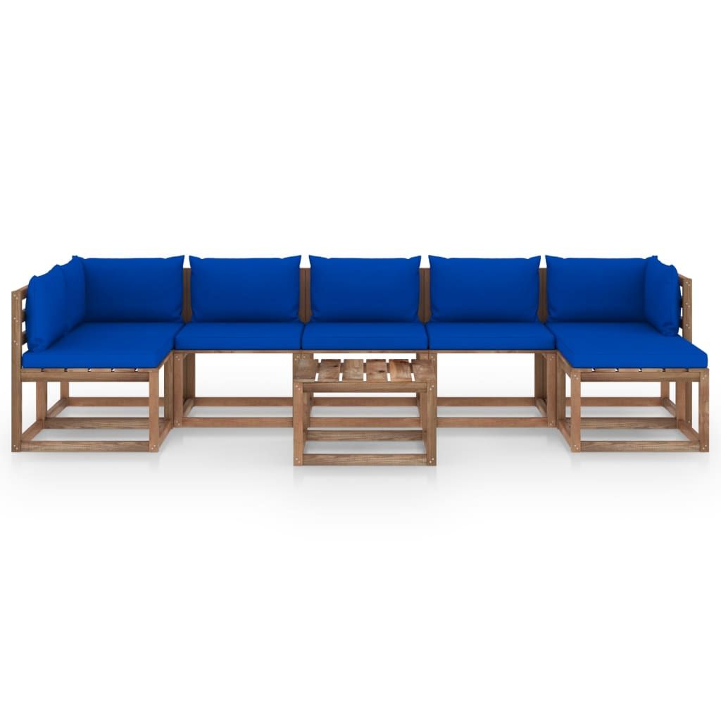 8-cz. zestaw wypoczynkowy do ogrodu z niebieskimi poduszkami