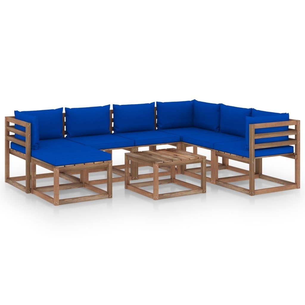 8-cz. zestaw wypoczynkowy do ogrodu, z poduszkami, niebieski