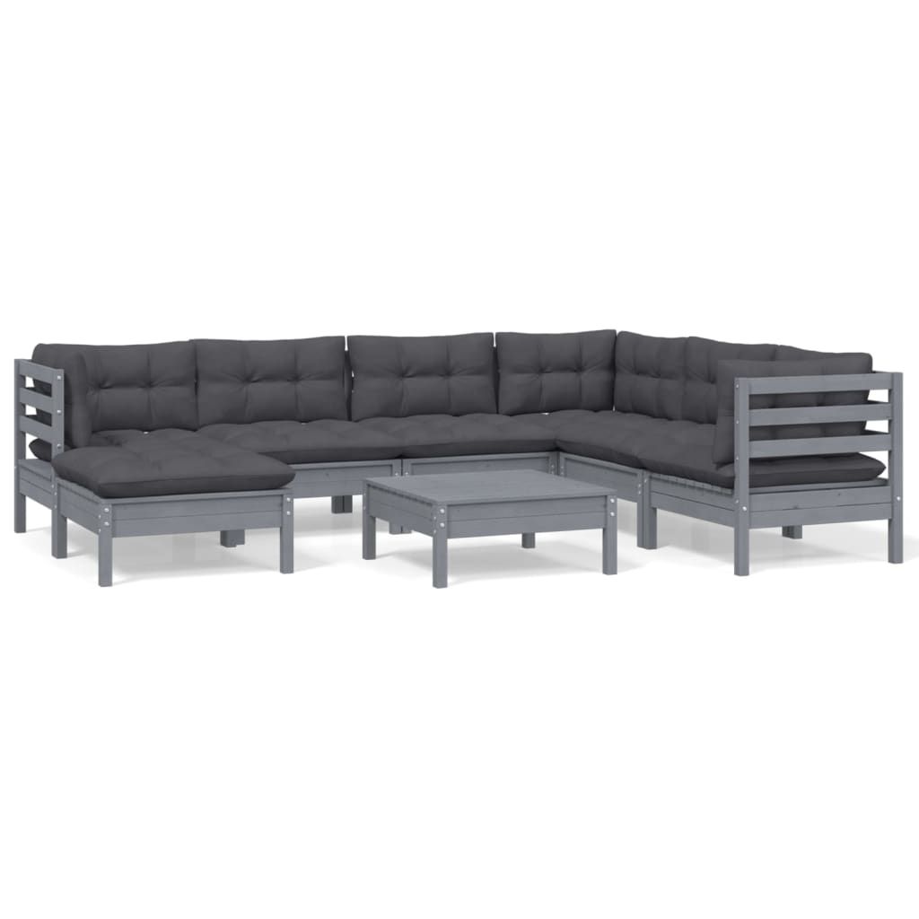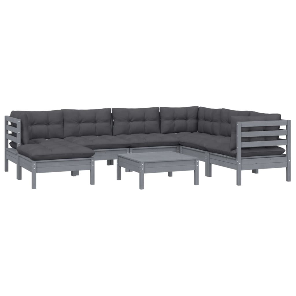 8-cz. zestaw wypoczynkowy do ogrodu, z poduszkami, szara sosna