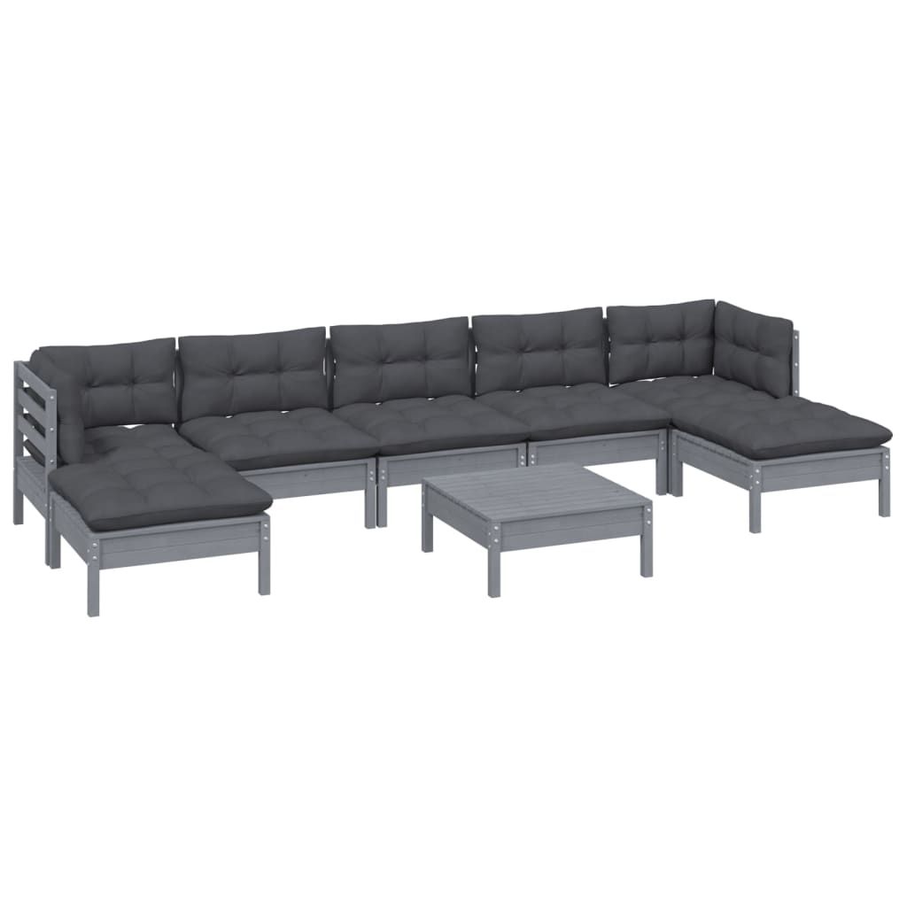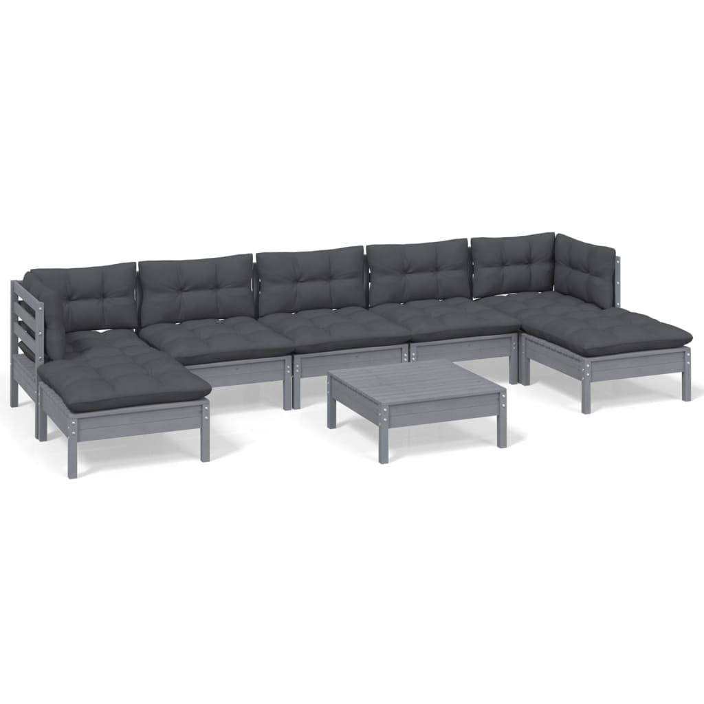 8-cz. zestaw wypoczynkowy do ogrodu, z poduszkami, szary, sosna