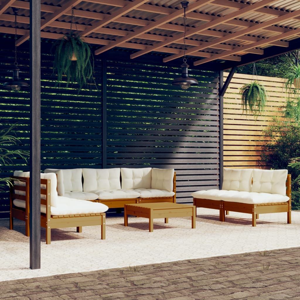 Ten ogrodowy zestaw wypoczynkowy jest znakomitym wyborem na relaks i korzystanie z pogody, a także drzemkę czy rozmowę z rodziną lub przyjaciółmi. Zestaw wypoczynkowy do ogrodu wykonano z litego drewna sosnowego, dzięki czemu jest solidny i stabilny. Poduszki oferują większy komfort. Możesz zestawiać ten komplet z innymi modułami i tworzyć własne aranżacje mebli wypoczynkowych w ogrodzie! Uwaga: aby przedłużyć żywotność mebli ogrodowych, zalecamy zabezpieczenie ich wodoodpornym pokrowcem.
