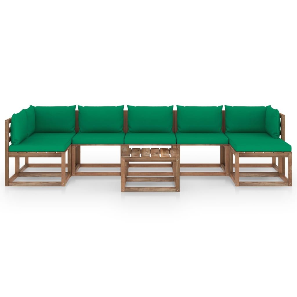 8-cz. zestaw wypoczynkowy do ogrodu z zielonymi poduszkami