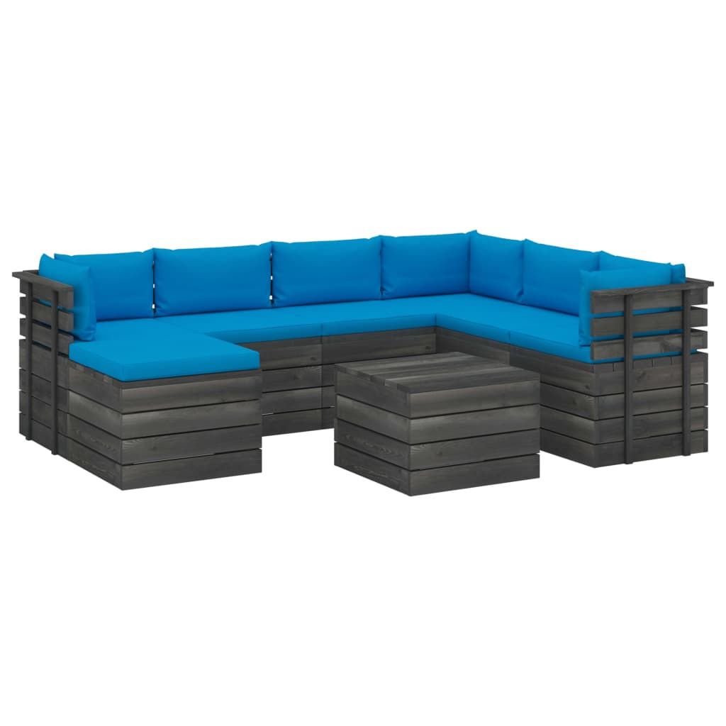 8-cz. zestaw wypoczynkowy z palet, z poduszkami, lita sosna