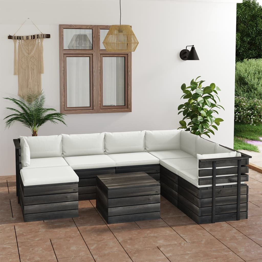 8-cz. zestaw wypoczynkowy z palet, z poduszkami, lita sosna