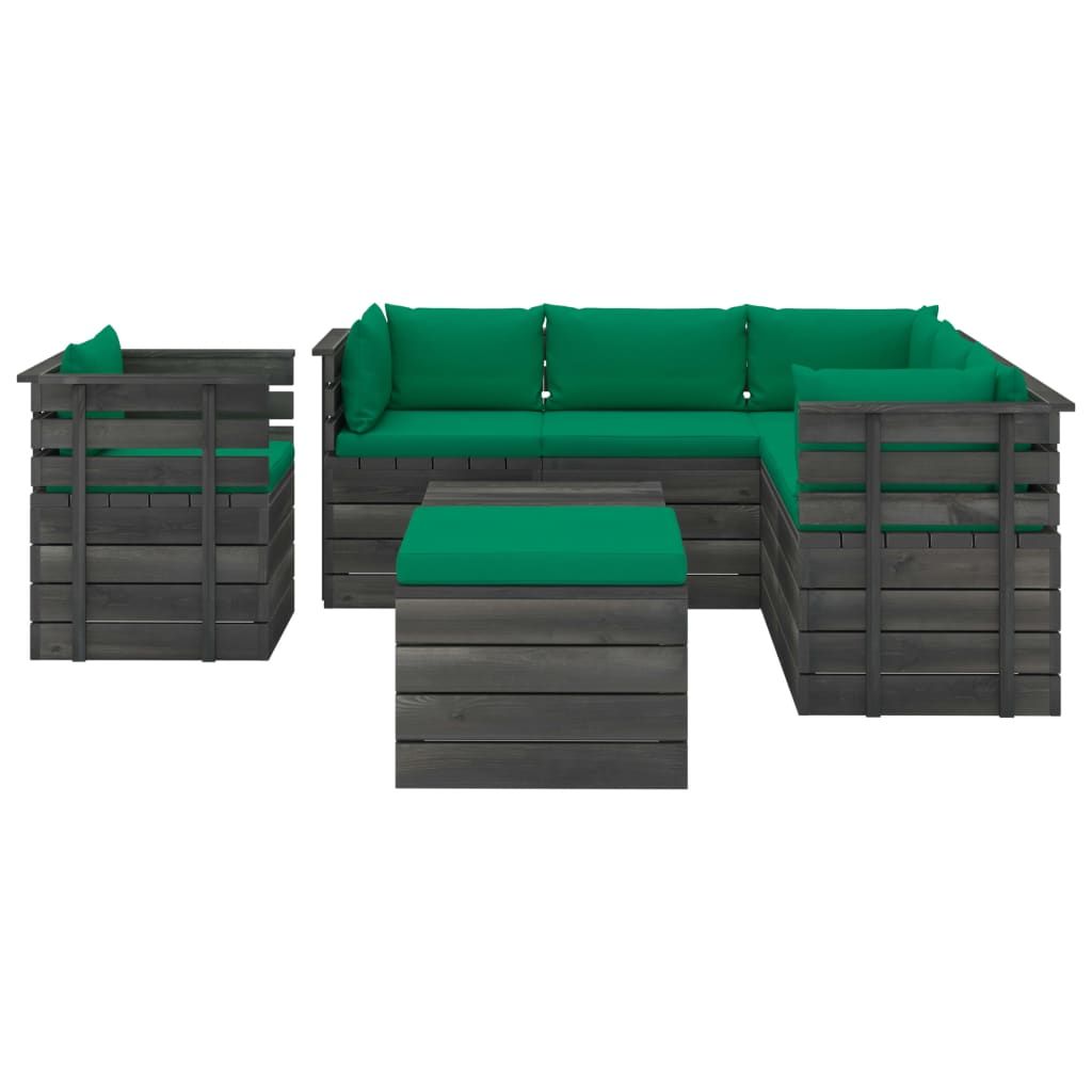 8-cz. zestaw wypoczynkowy z palet, z poduszkami, lita sosna