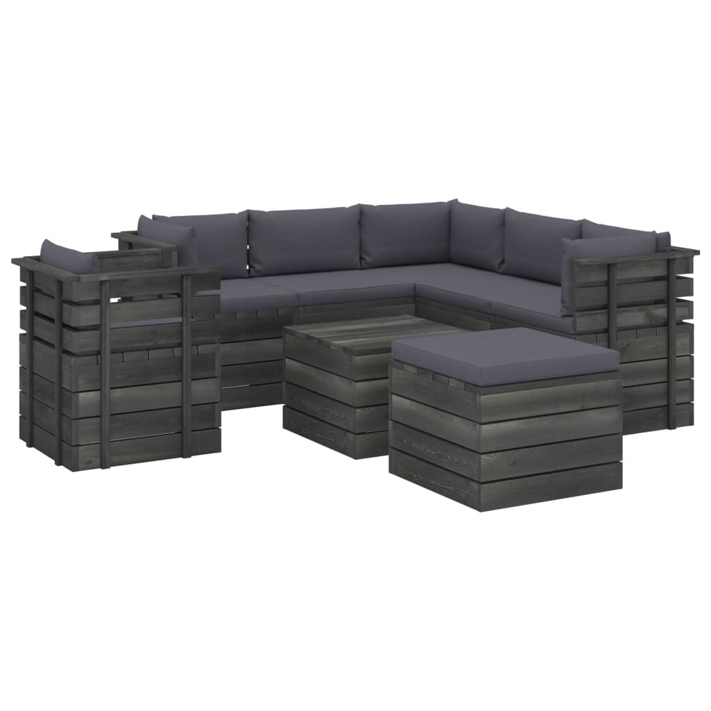 8-cz. zestaw wypoczynkowy z palet, z poduszkami, lita sosna