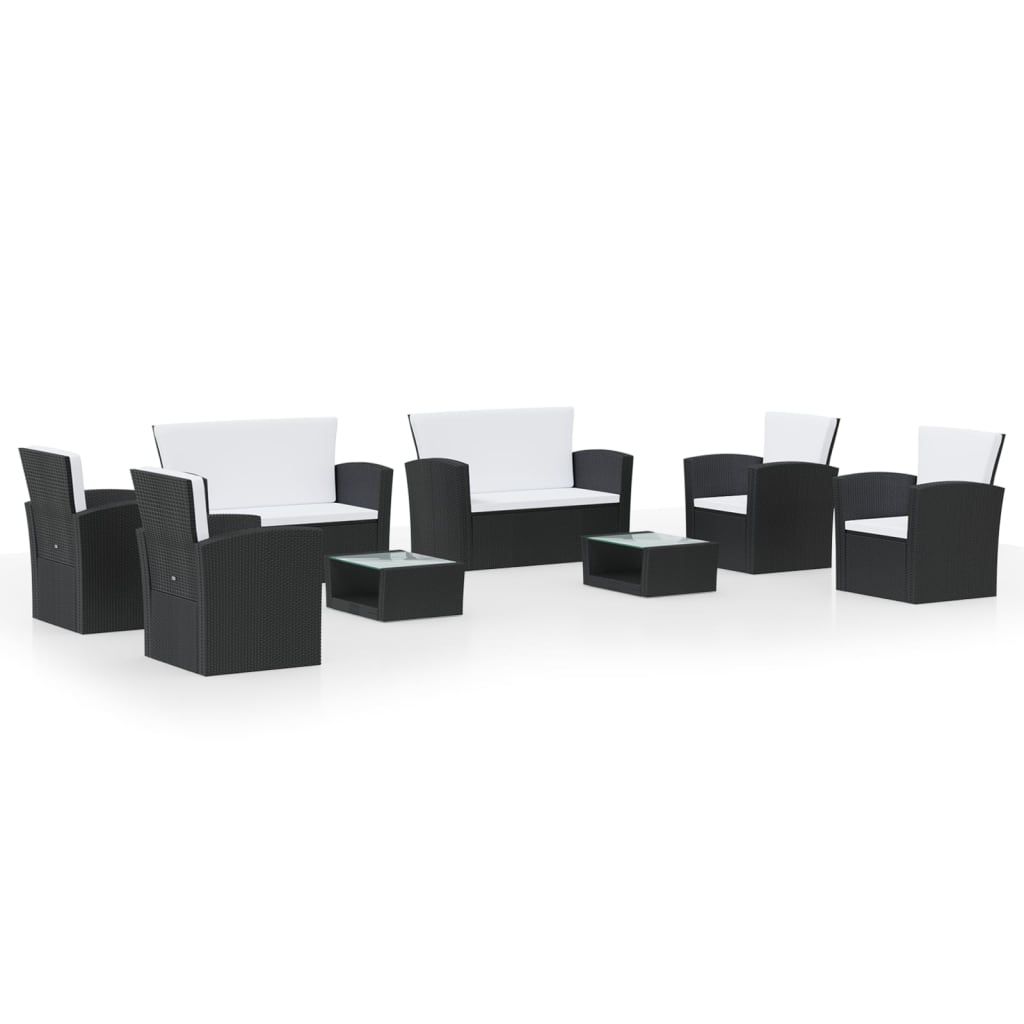 8-częściowy zestaw mebli do ogrodu, poduszki, rattan PE, czarny