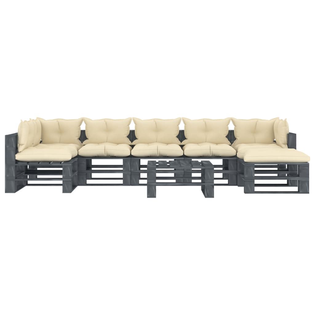8-częściowy zestaw mebli ogrodowych z palet, kremowe poduszki