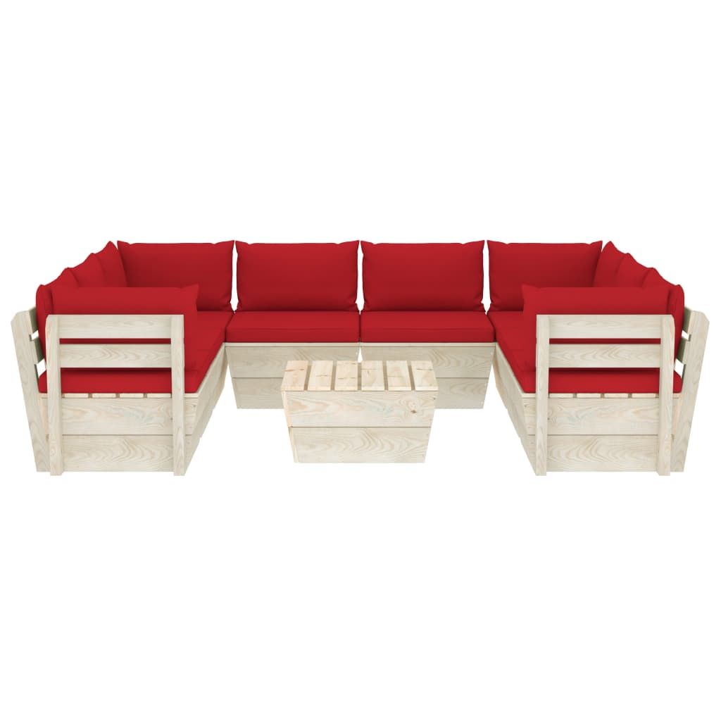 9-cz. ogrodowy zestaw wypoczynkowy z palet, poduszki, świerk