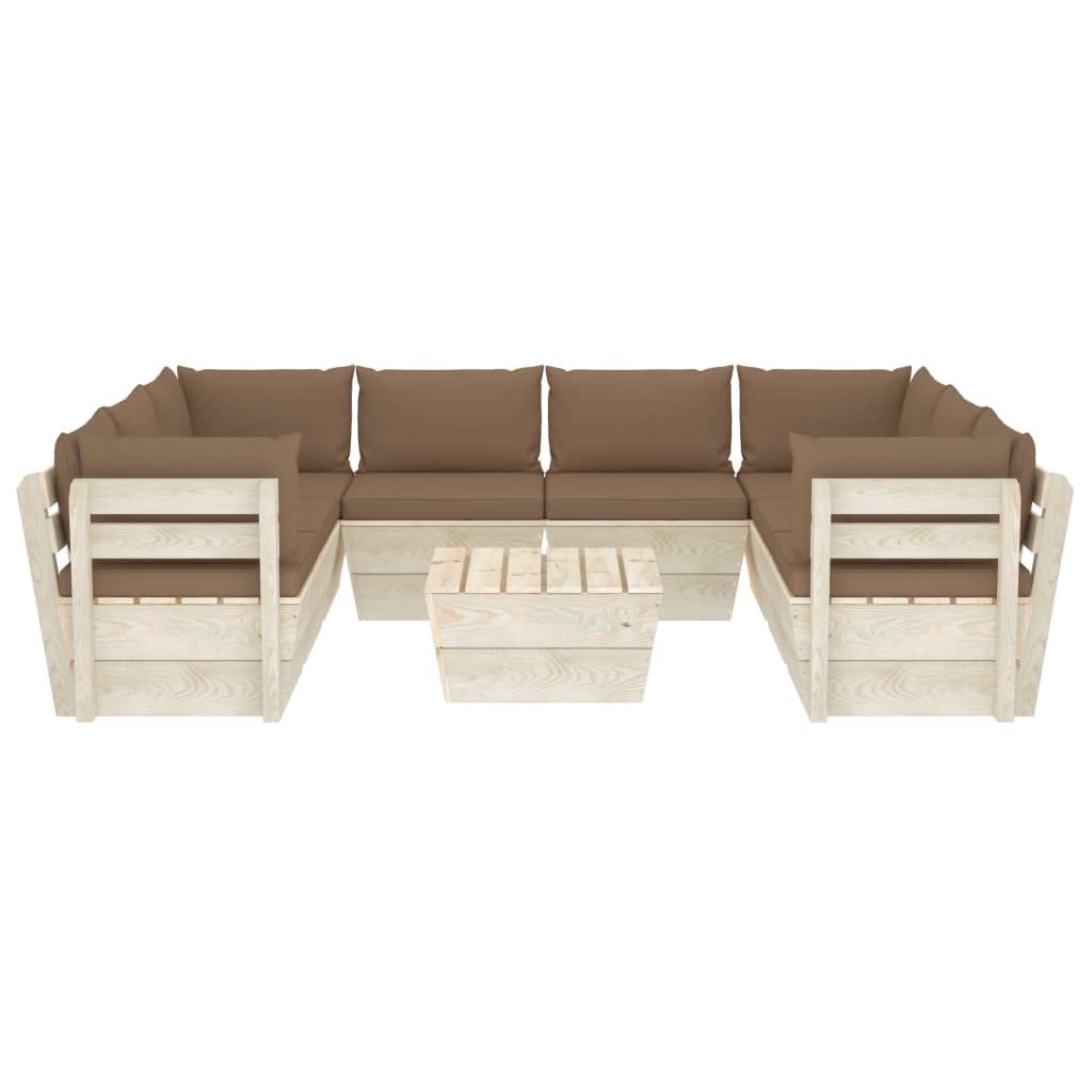 9-cz. ogrodowy zestaw wypoczynkowy z palet, poduszki, świerk