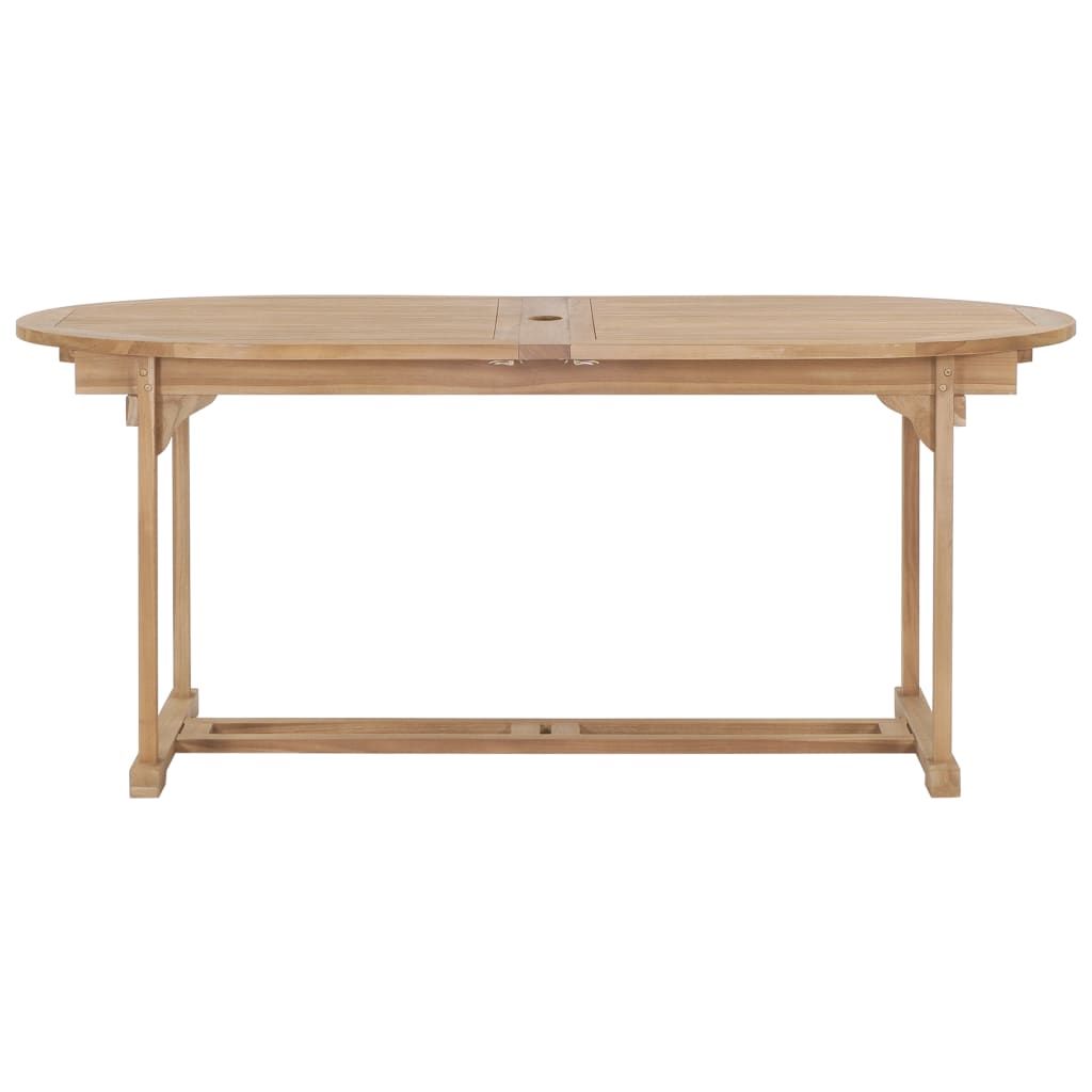 Wykonany z litego drewna zestaw mebli ogrodowych sprawdzi się na świeżym powietrzu i stanie się atrakcyjnym dodatkiem, skupiającym uwagę gości, w ogrodzie, na balkonie bądź tarasie. Dzięki podwójnym elementom wydłużającym, długość owalnego stołu można zwiększyć do 230 lub 280 cm, gdy wymagana jest dodatkowa przestrzeń. Mebel wykonany został z niezwykle trwałego, twardego drewna tekowego, które było sezonowane, suszone komorowo, a następnie drobno oszlifowane by nadać mu bardzo gładką powierzchnię. Drewno tekowe znane jest z wyjątkowej wytrzymałości i odporności na warunki atmosferyczne, dzięki czemu jest znacznie bardziej odpowiednie do budowy mebli ogrodowych niż jakikolwiek inny rodzaj drewna. Tek to idealny wybór, jeśli chcesz kupić trwałe meble ogrodowe. Jednocześnie jest również być odporne na wilgoć i owady. Ze względu na swoją solidną konstrukcję ten zestaw do jadalni jest bardzo bezpieczny i zapewni Ci długotrwały komfort oraz wygodę spędzania czasu z rodziną i przyjaciółmi. Poza tym zestaw można łatwo złożyć, gdy nie jest używany. Ten stół ma otwór, w którym można zainstalować parasol. Przesyłka obejmuje 1 rozkładany stół i 8 rozkładanych krzeseł.
