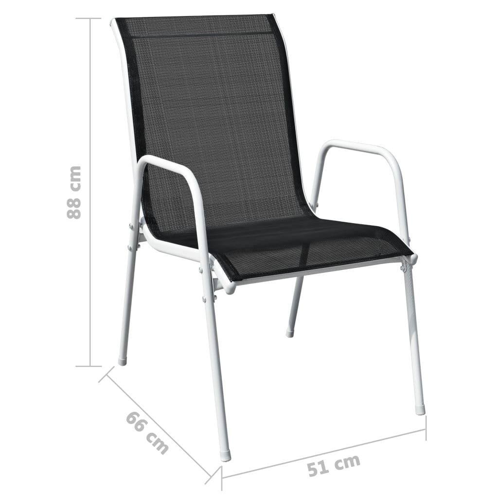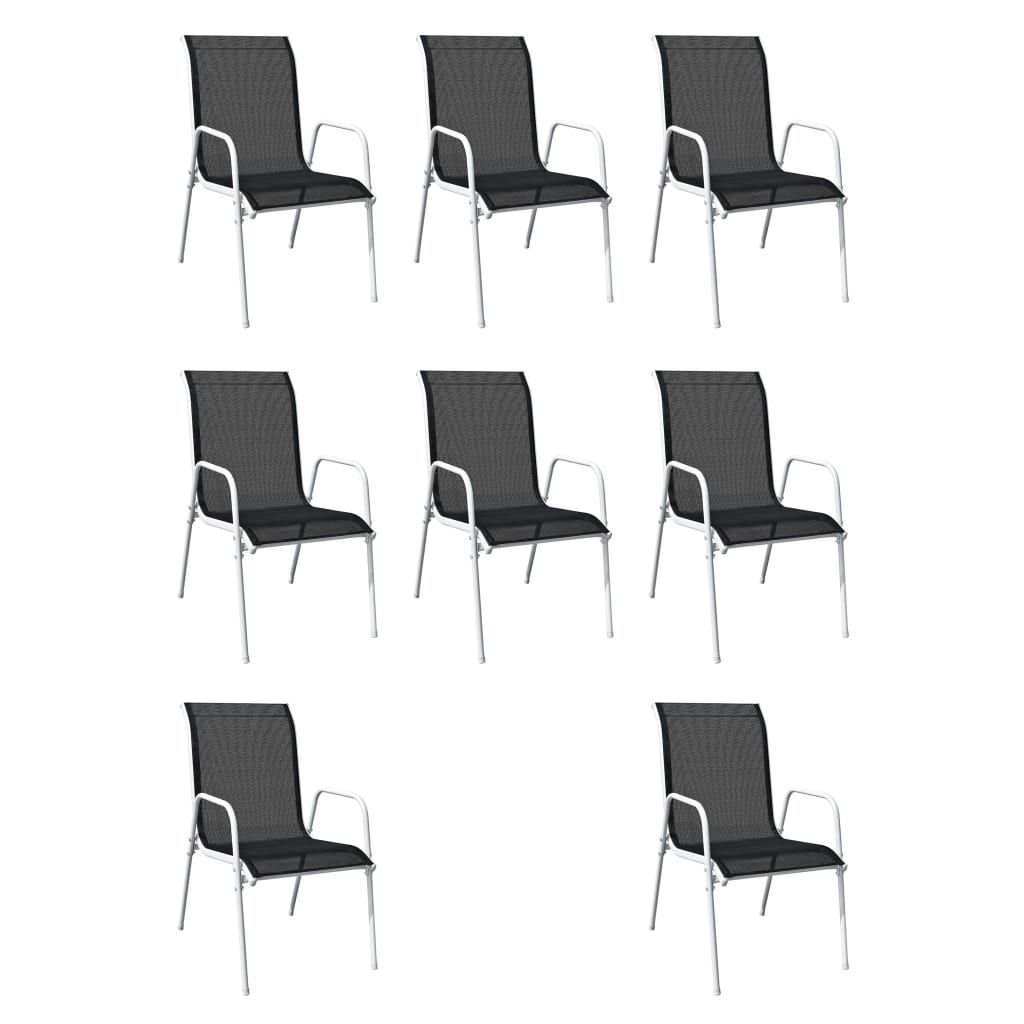 Zestaw mebli do ogrodu obejmuje 1 stół ze szklanym blatem oraz 8 krzeseł pokrytych tkaniną textilene. Stylowe formy oraz trwałe stalowe ramy naszego kompletu idealnie sprawdzą się w ogrodzie lub na tarasie. Prosta elegancja sprawi, że codzienne obiady będą wyjątkowe. Zestaw mebli ogrodowych ma malowane proszkowo, stalowe ramy, dzięki czemu stół i krzesła są stabilne oraz trwałe. Wygodne krzesła zostały obite mocną i łatwą do czyszczenia tkaniną textilene. Można je układać w stos, aby zaoszczędzić miejsce, gdy nie są używane. Przesyłka zawiera stół ze szklanym blatem i 8 krzeseł z wysokiej jakości tkaniny textilene.