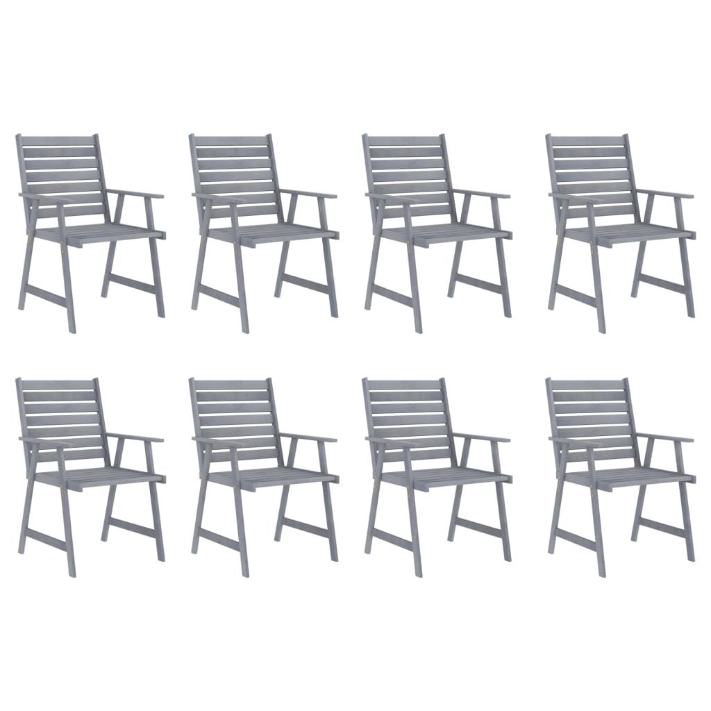 9-częściowy zestaw mebli ogrodowych składa się z 1 stołu i 8 krzeseł. Będzie głównym punktem Twojego ogrodu lub tarasu. Ciesz się kubkiem herbaty i smacznym jedzeniem wspólnie z rodziną i przyjaciółmi. Zestaw jadalniany wykonany jest z litego drewna akacjowego, które jest trwałe i odporne na warunki atmosferyczne. Wykończenie olejowe nadaje drewnu bogaty, ciepły kolor i sprawia, że meble są łatwe do czyszczenia za pomocą wilgotnej ściereczki.
