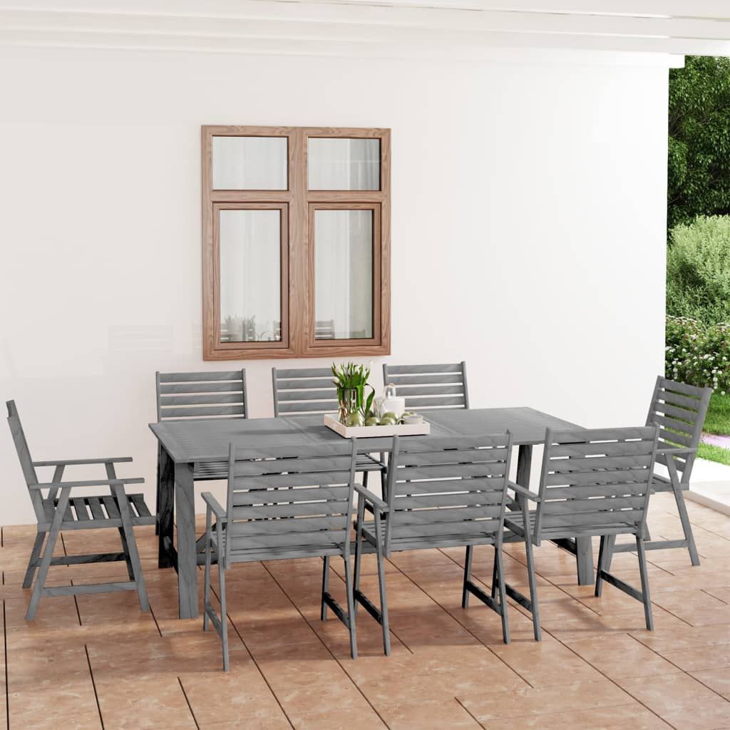 9-cz. zestaw mebli ogrodowych, szary, lite drewno akacjowe